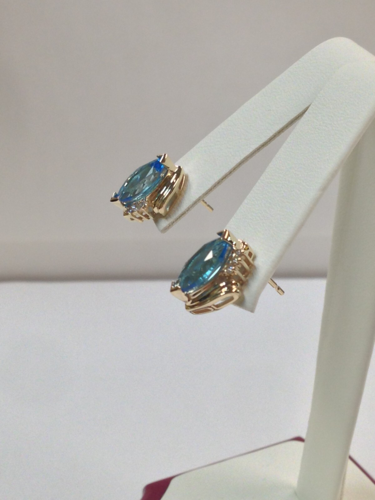 как выглядит Natural Blue Topaz with Diamond Stud Earrings Solid 14kt Yellow Gold фото