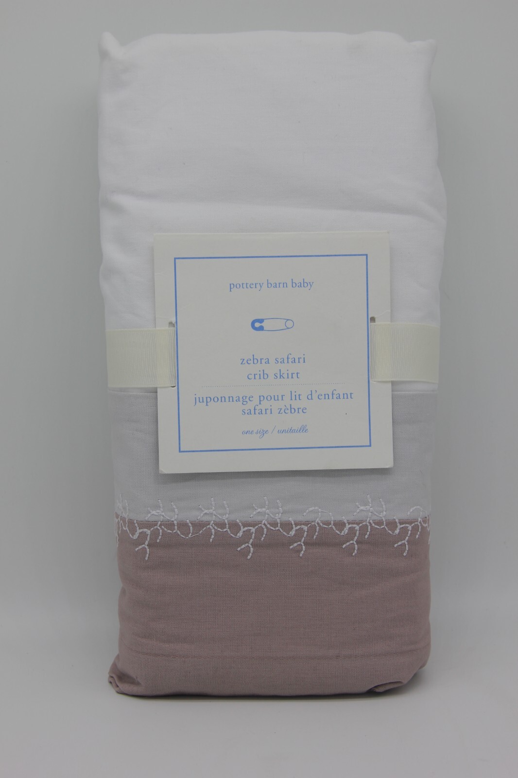 как выглядит Pottery Barn Kids Baby Crib Skirt Zebra Safari White Gray Mauve 28"x52" NWT 79 фото