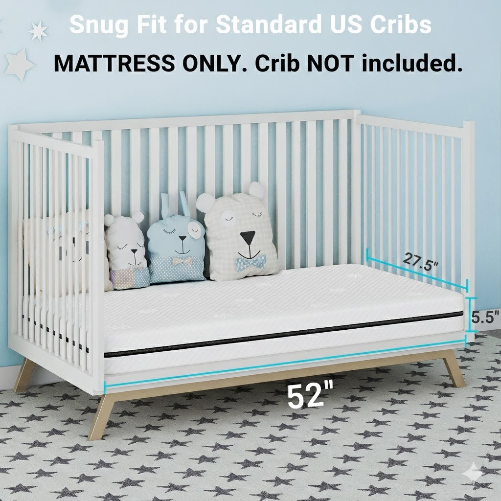 5.5 in Crib Toddler Mattress Dual-Sided Memory Foam - Breathable Washable