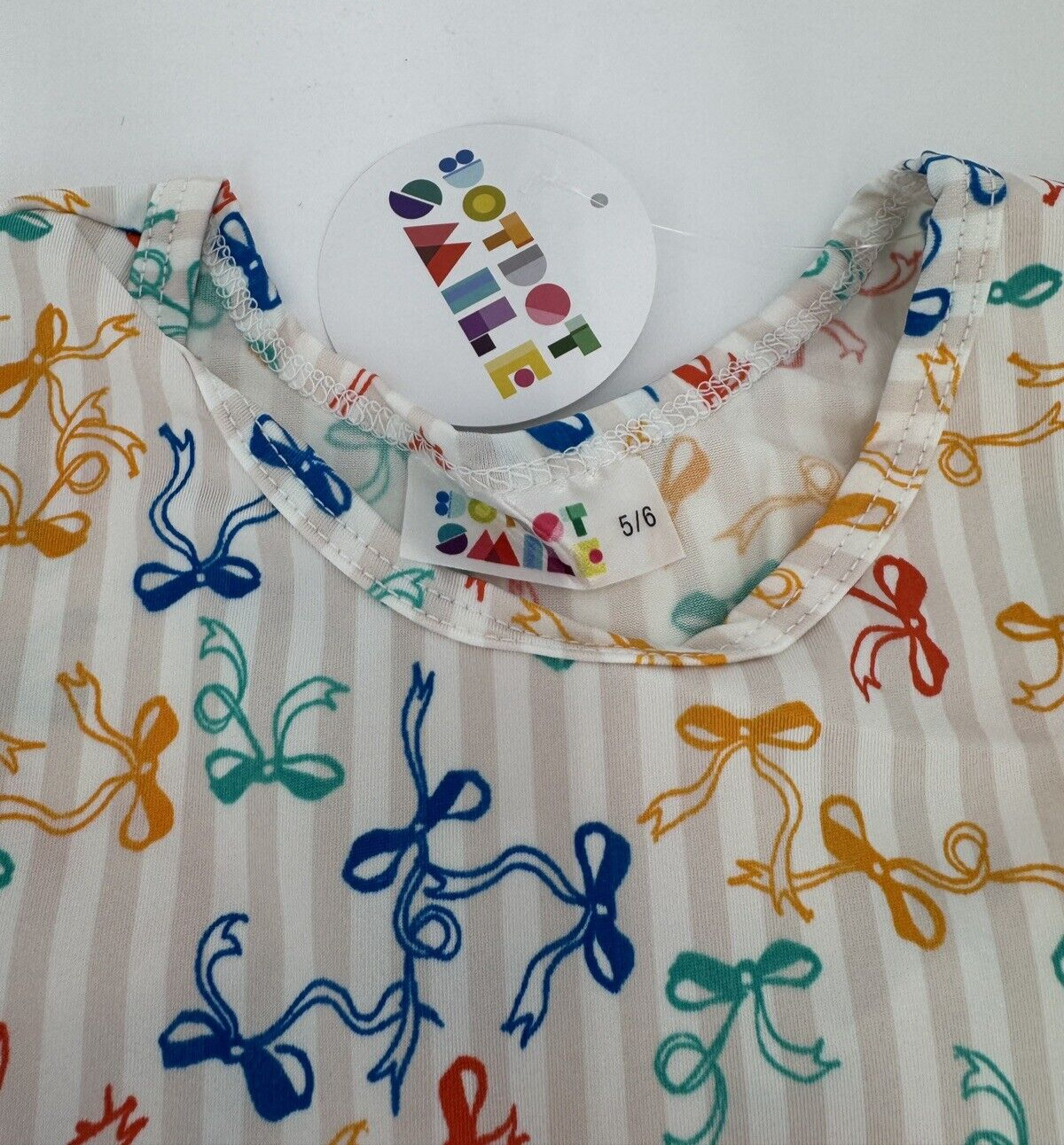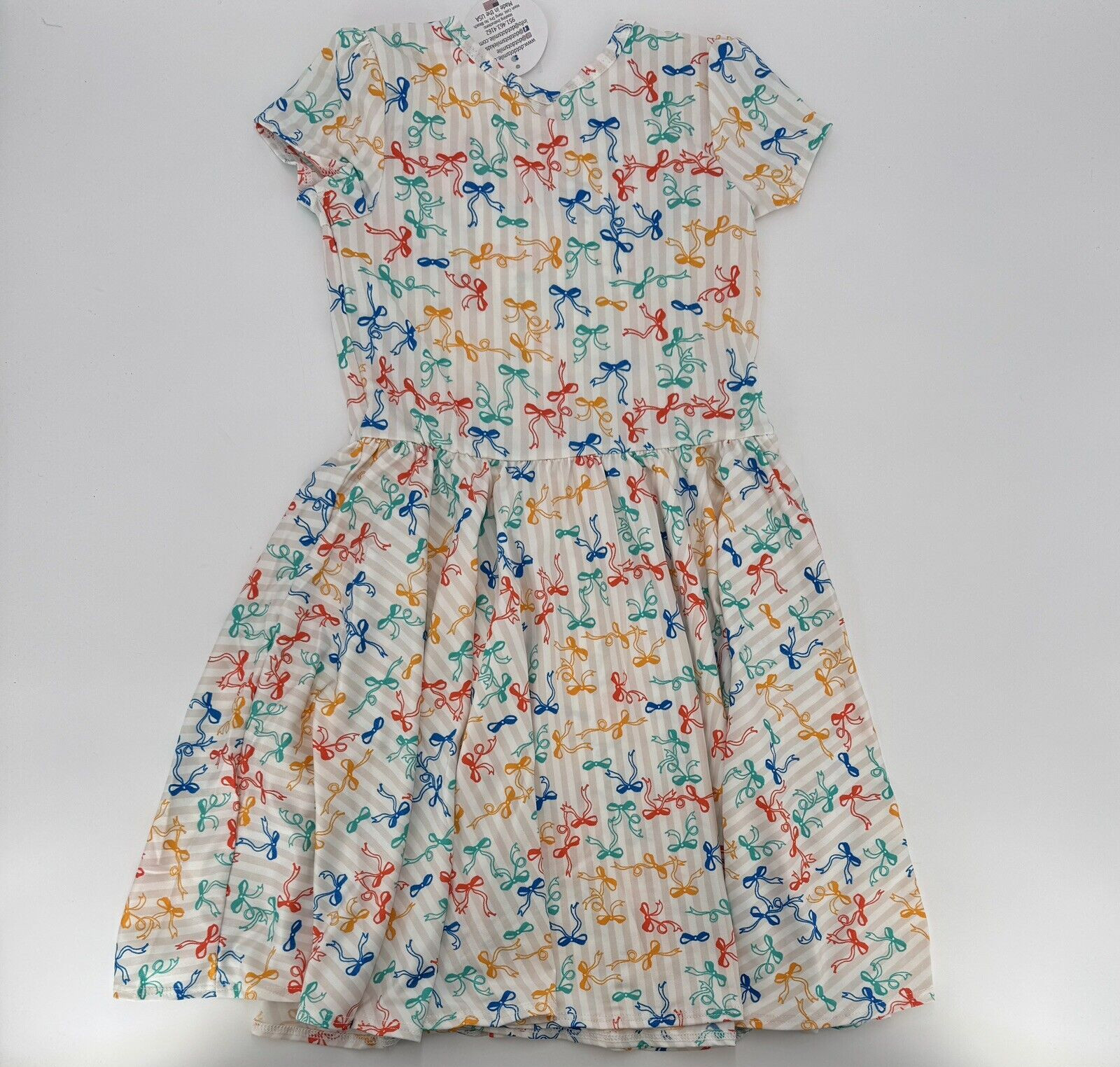как выглядит Dot Dot Smile Girls Cap Sleeve Dress 5-6 Stripes Bows Short Sleeve Twirl фото