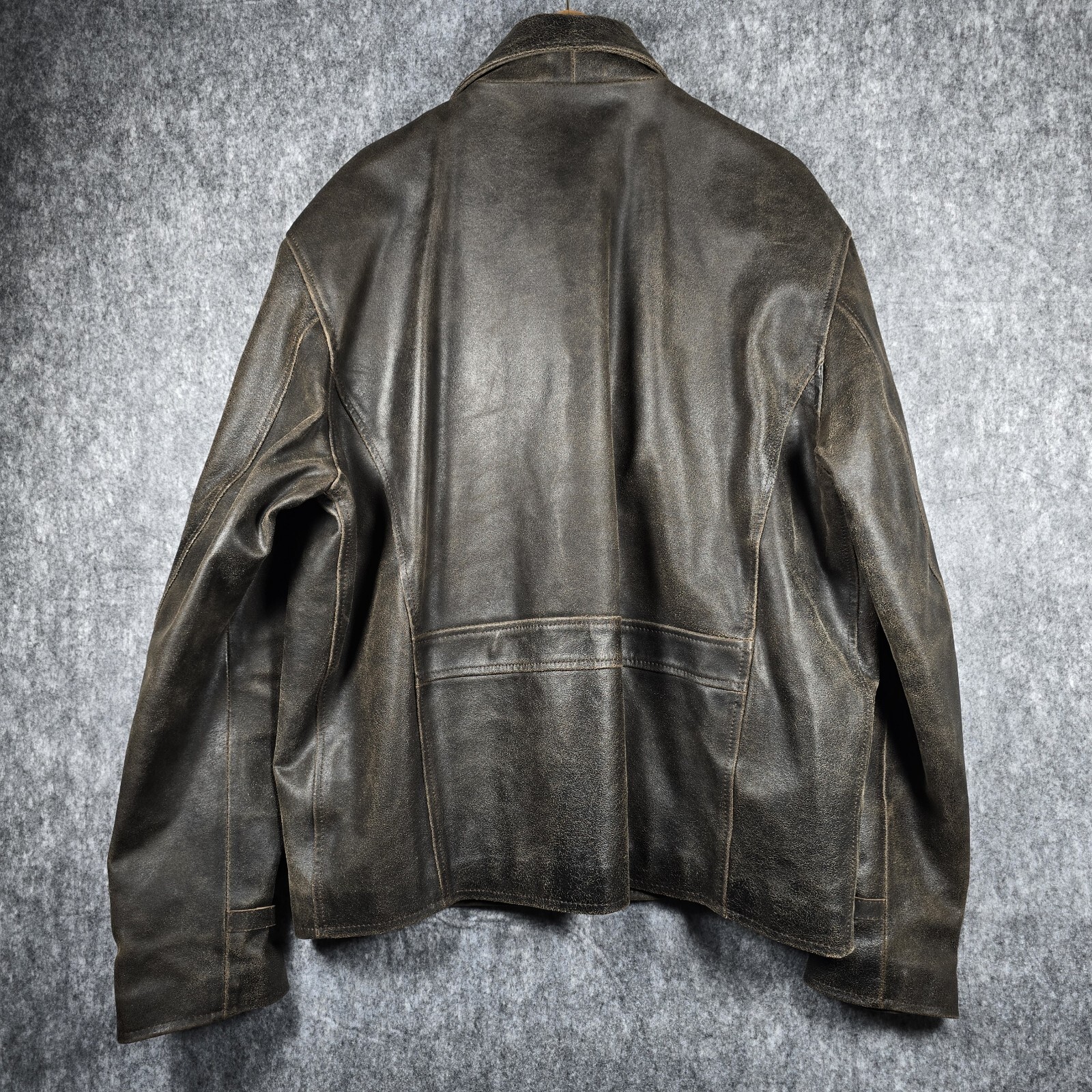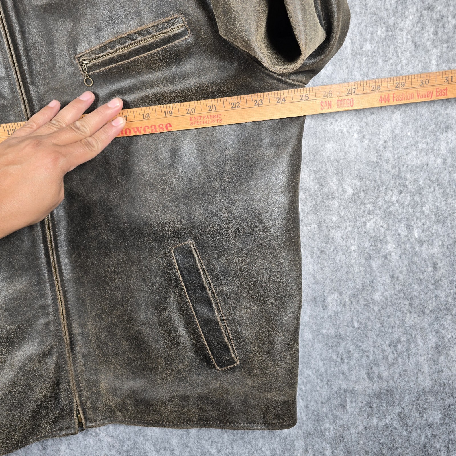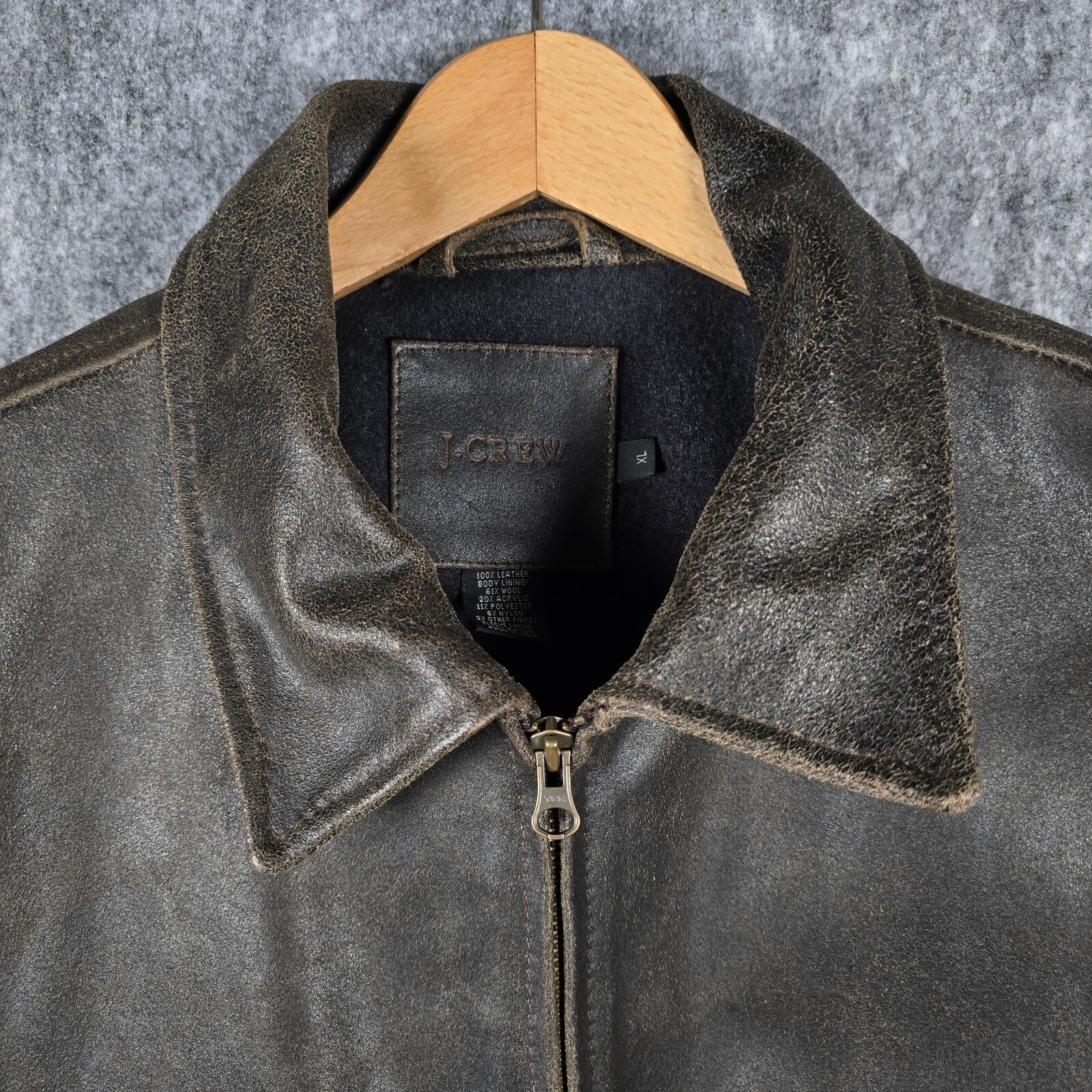 Vintage J. Crew Brown Leather Bomber Zip Jacket Wool Lined Distressed Mens XL