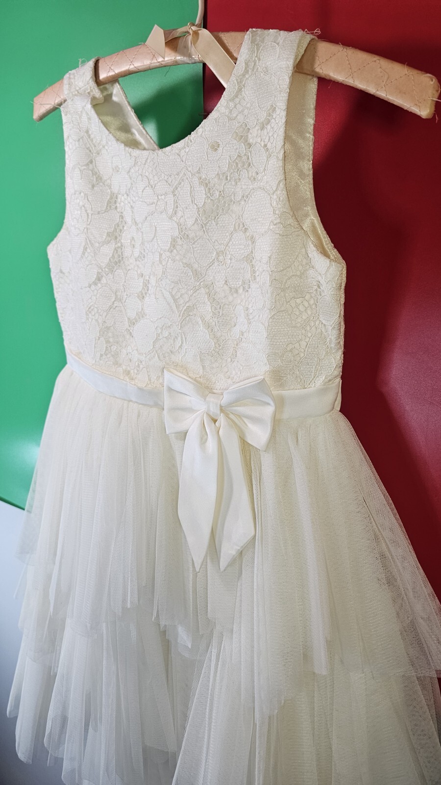 как выглядит American Princess Off-white Flower Girl, Wedding Dress In Size 10, Lacey Top фото
