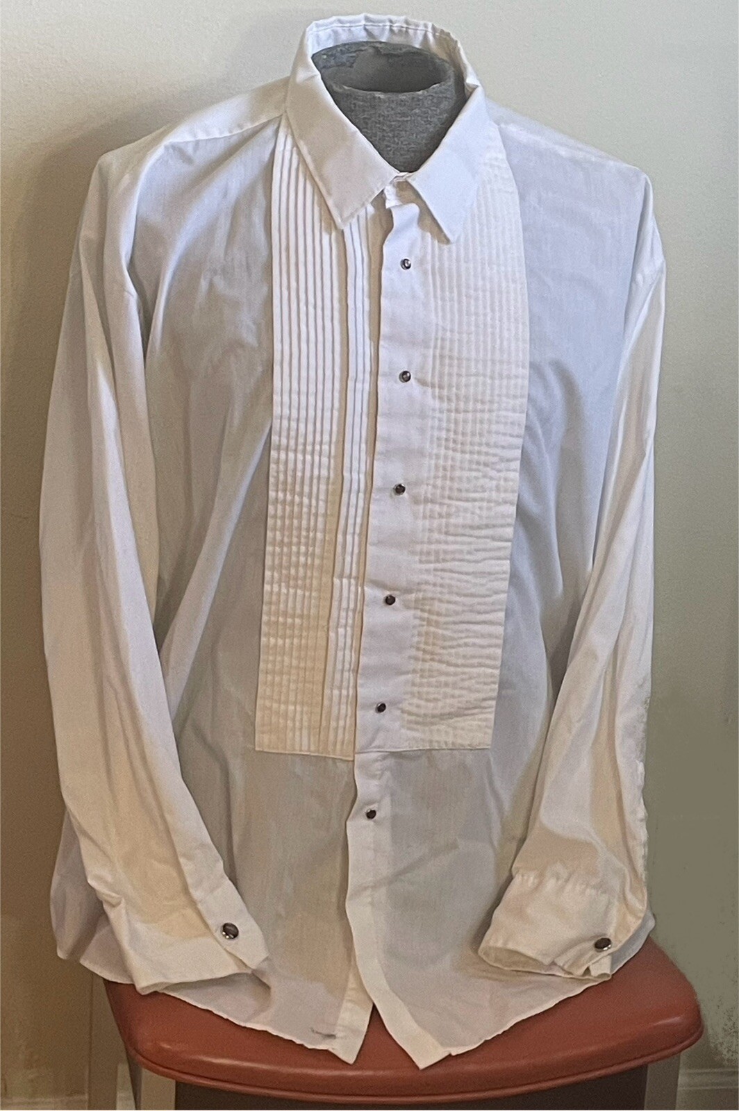 Vtg 70s After Six White Pearl Snap Formal Tuxedo Ruffle Shirt 3XL
