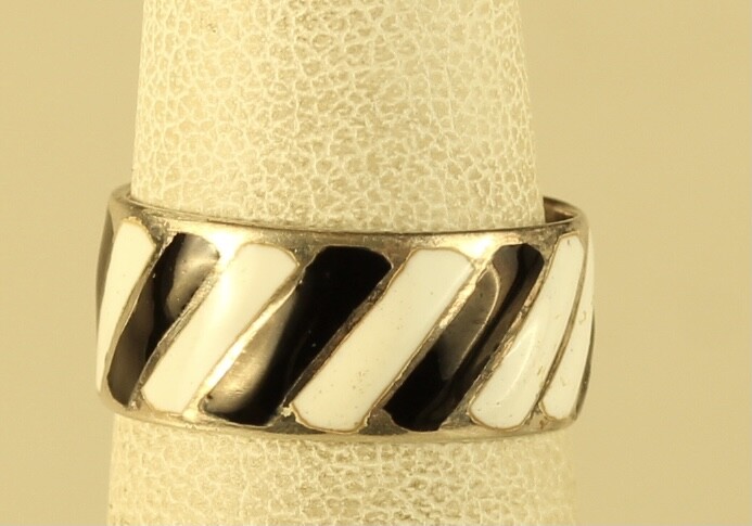 Vintage Sterling Silver Signed Siam Black and White Painted Enamel Ring Band