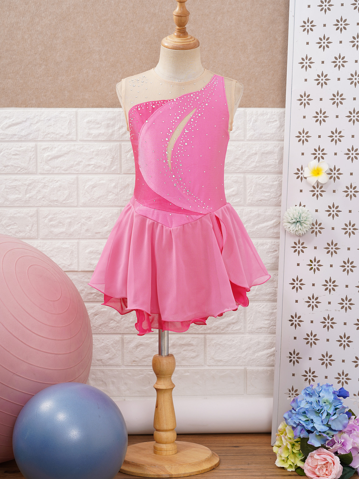 Kids Girls Glitter Ballet Dance Ice Skating Dress Shiny Leotard Lyrical Dress