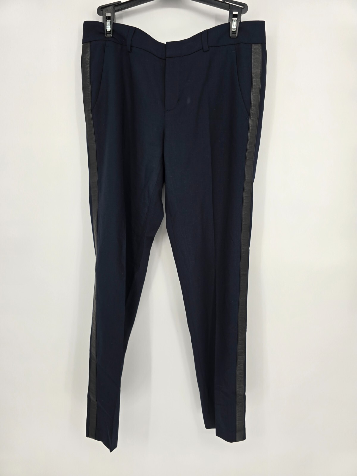 как выглядит Vince Mid Rise Wool Blend Trouser Womens Size 4 Dark Navy Tuxedo Stripe фото