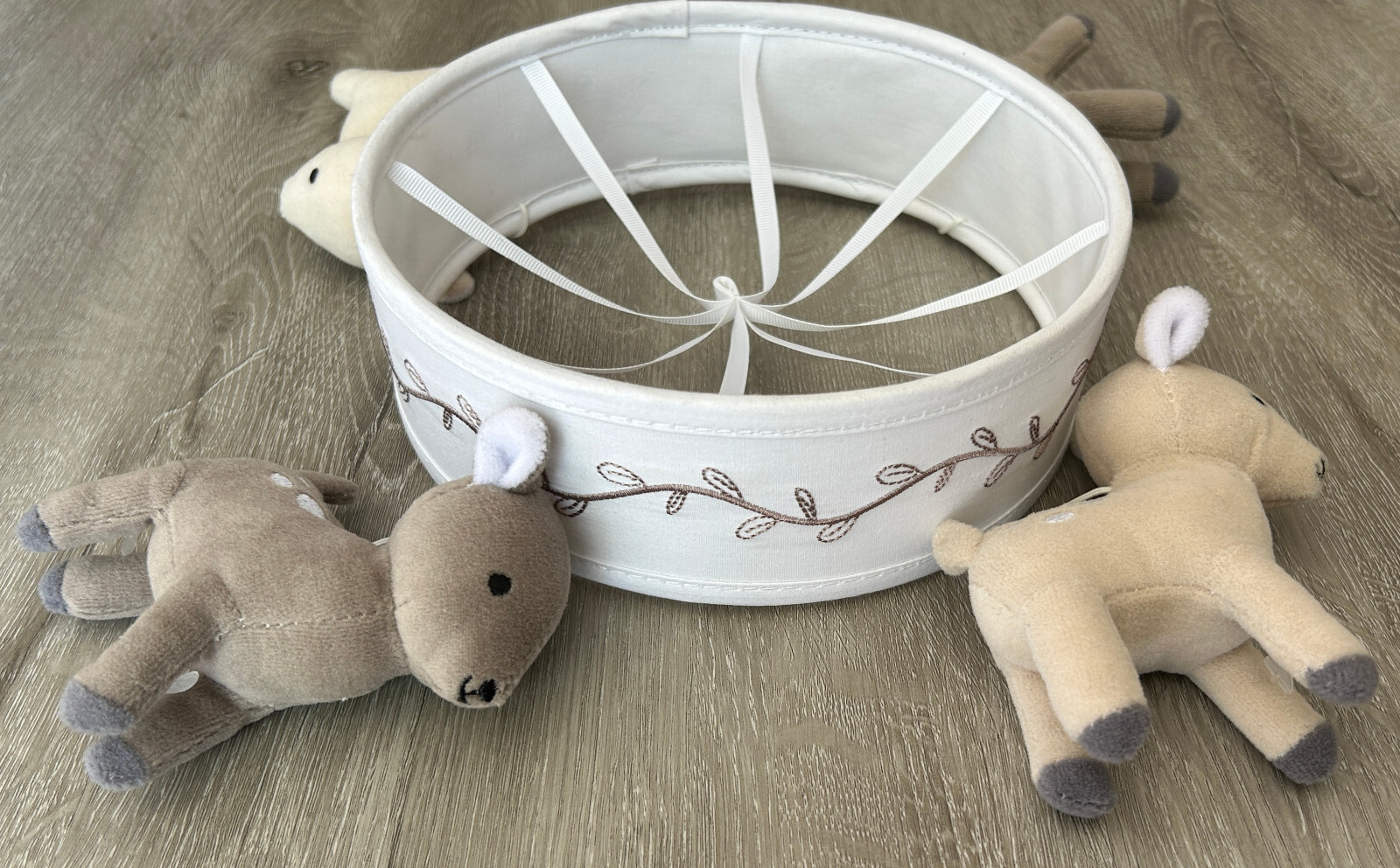 как выглядит Lambs Ivy Tan/White Meadow Mobile REPLACEMENT Soft Ring Hanging Toys Part Deer фото