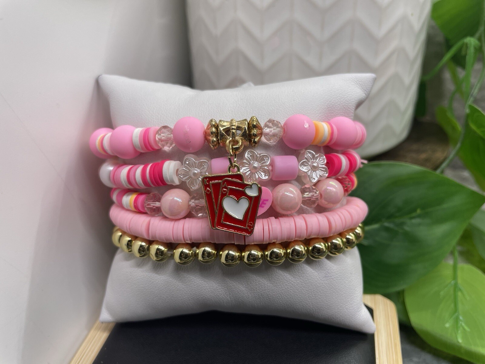 как выглядит 5 PC Layered Love Valentine Heart 7 Plus Stretch Charm Bracelet Set B4427 фото