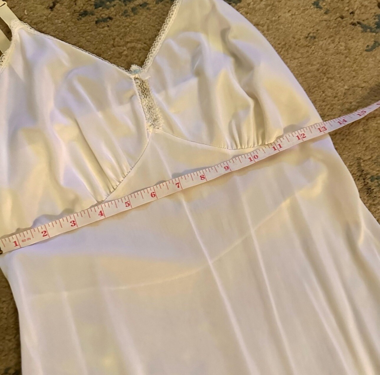 Vintage Nightgown Womens Flower Bud Lace Trim Slip Lingerie Off White Long