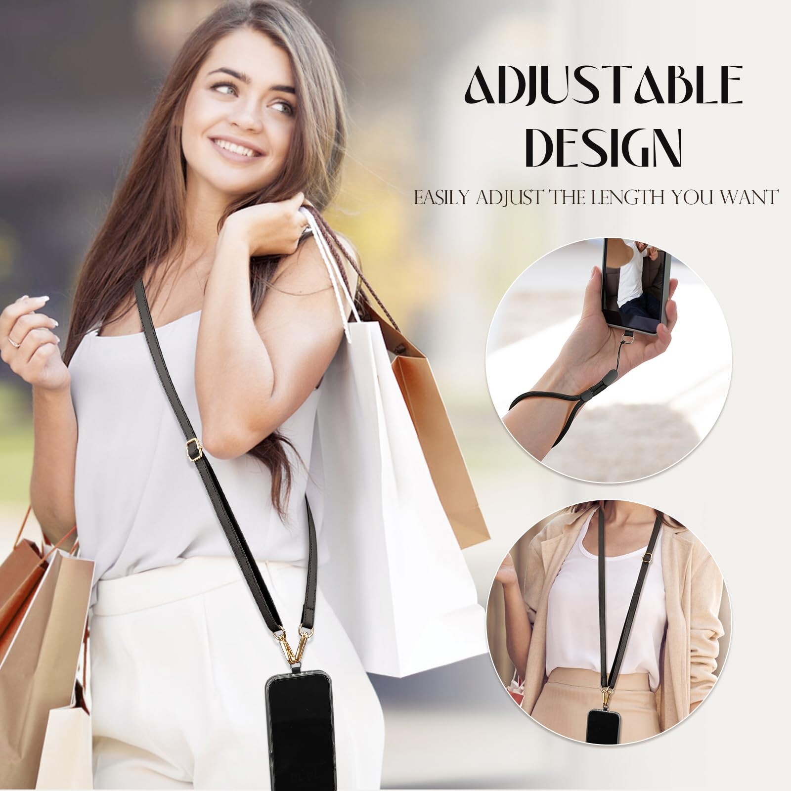 TiMOVO Phone Crossbody Strap, Adjustable Phone Lanyard with 1 215; Leather Phon