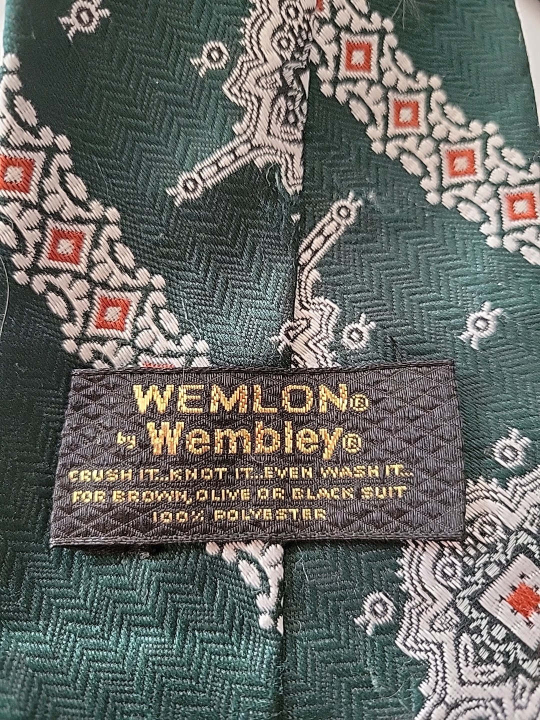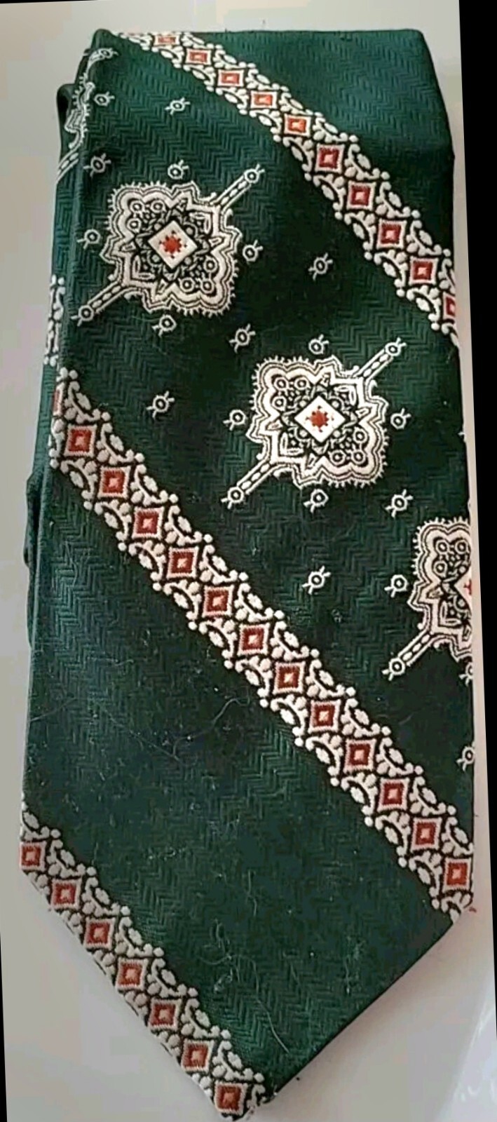 Vtg 60s 70s Mens Tie Wembley Wemlon Polyester Necktie Green RED White 4x55