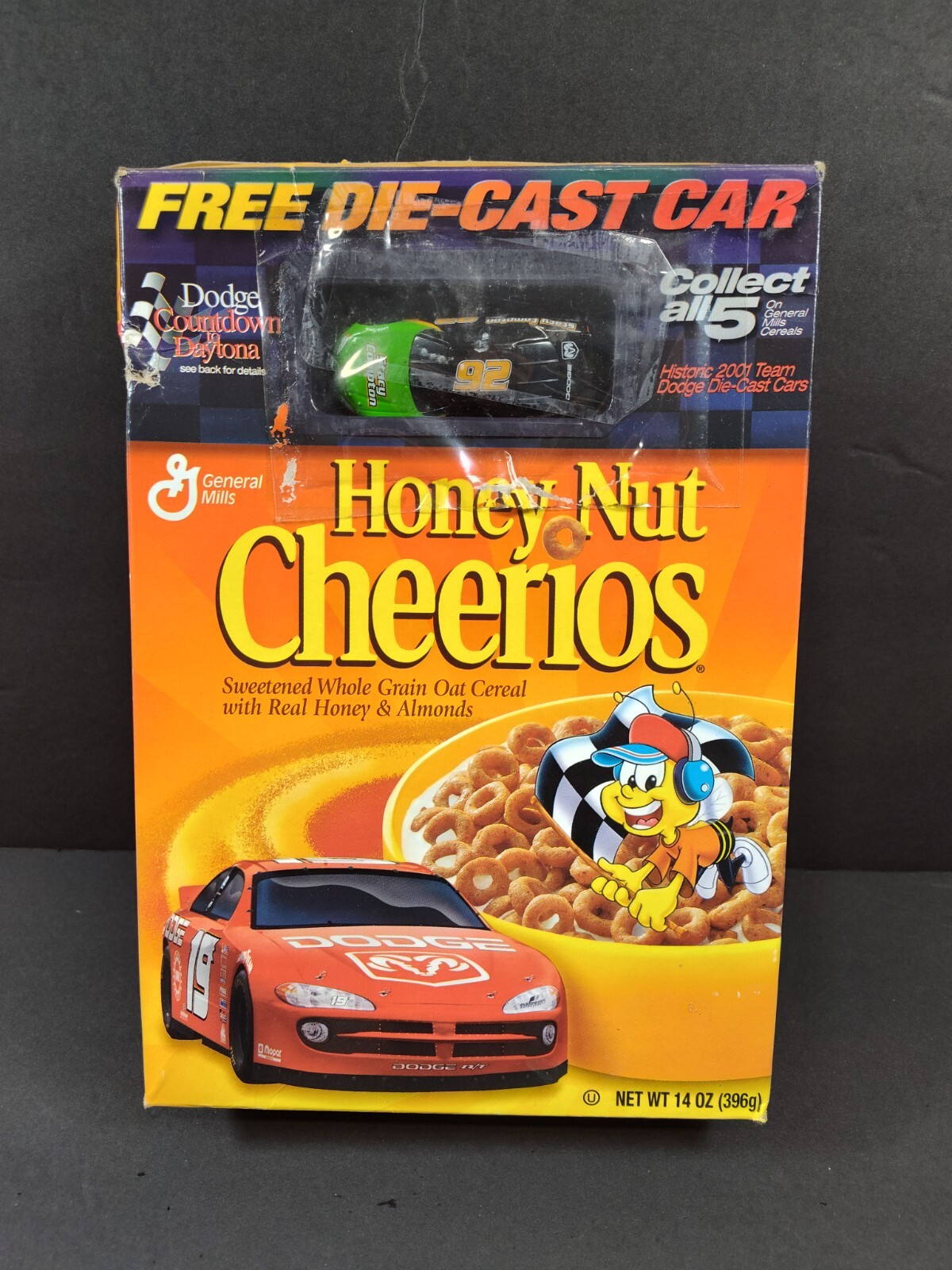General Mills Cheerios Cereal Box w/ 92 Historic 2001 Team Dodge Die-Cast Car