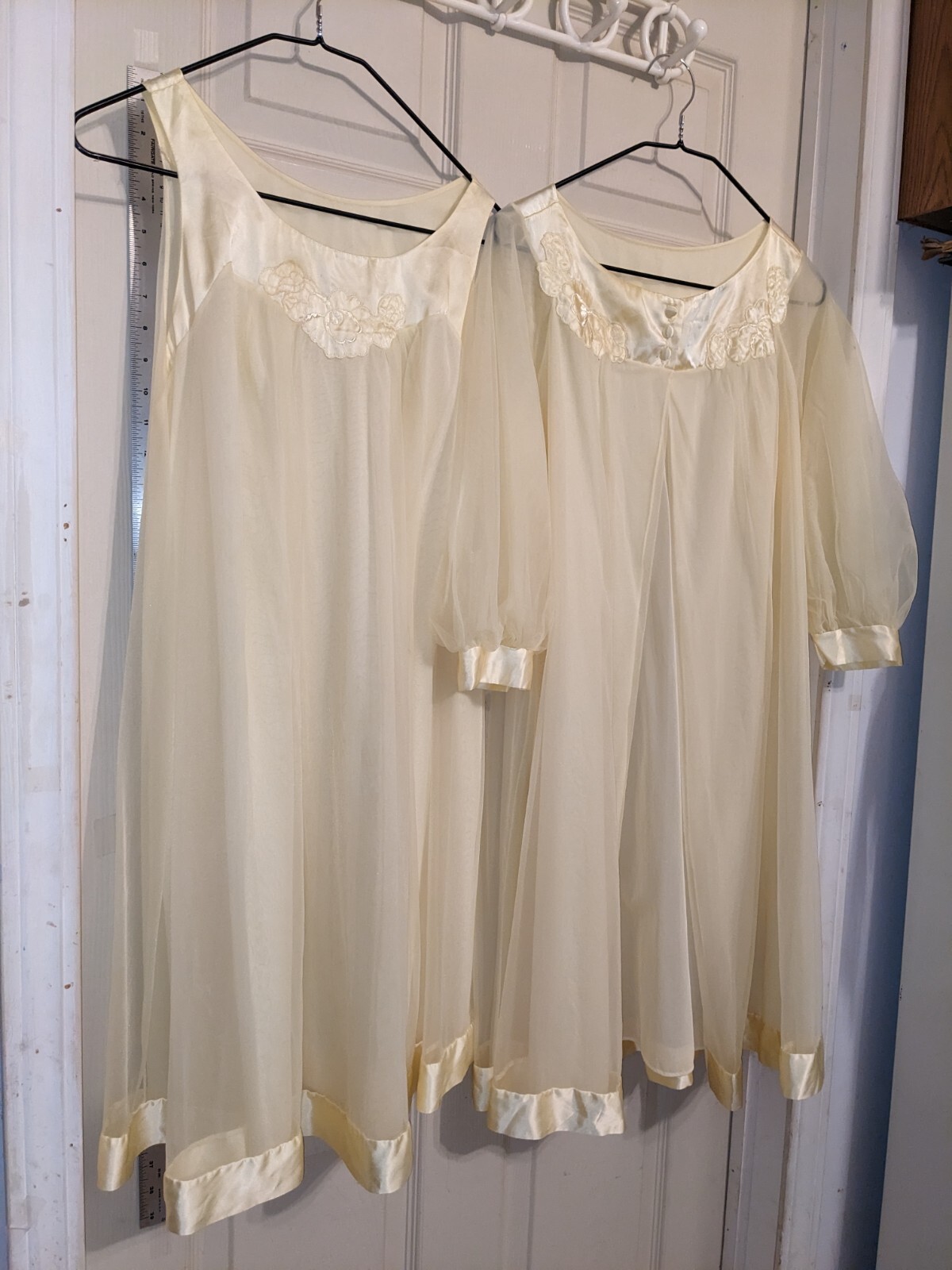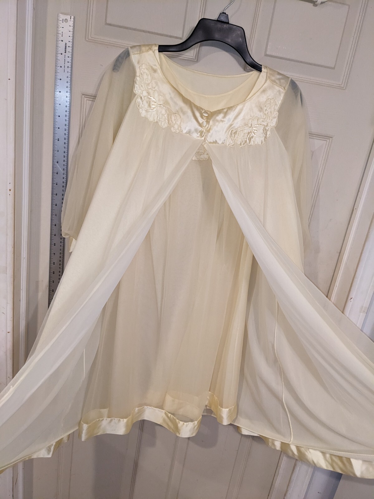 как выглядит VTG 60s Gossard Artemis Double Chiffon Nylon Peignoir Lt Yellow Gown Robe sz SM фото