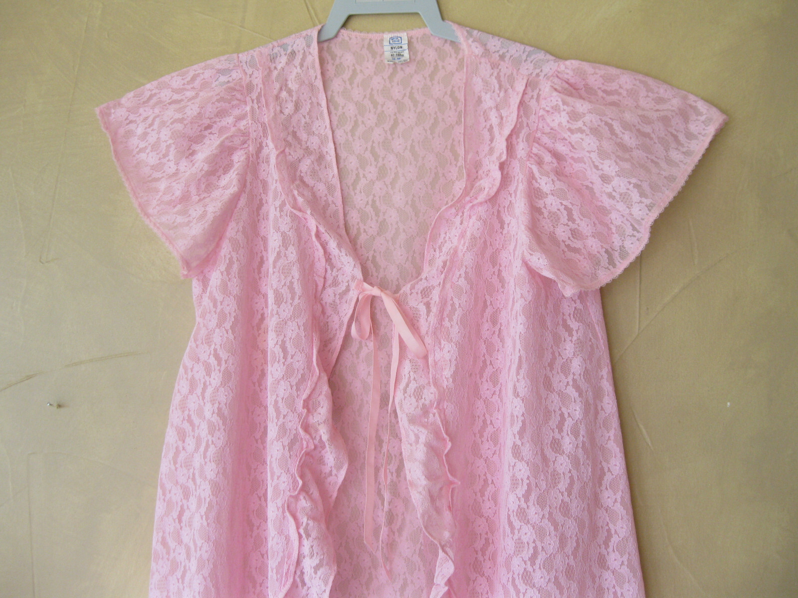 как выглядит Vintage 70s English Pink Lace over Nylon Babydoll Negligee Peignoir Prova Med фото