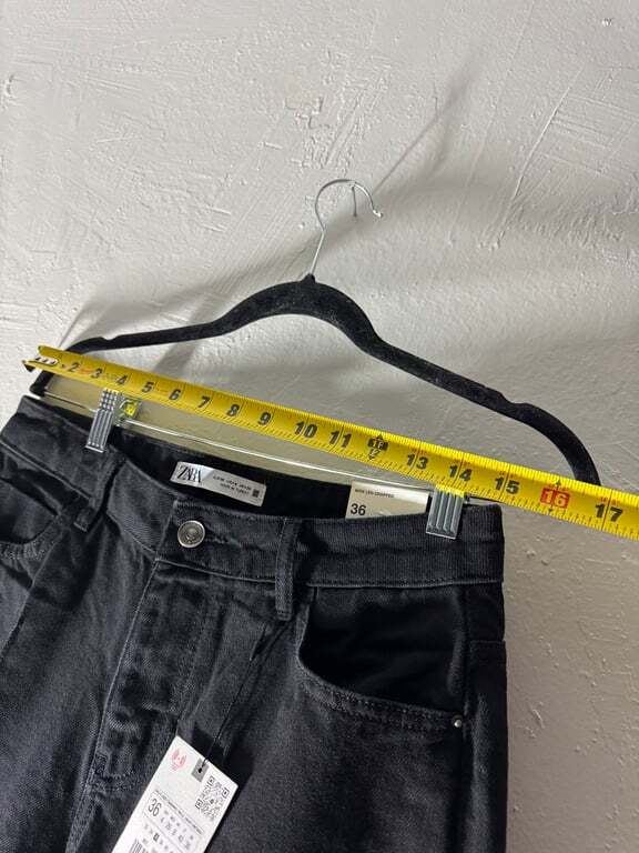 как выглядит HIGH-WAISTED women s Zara Z1975 CROPPED WIDE LEG JEANS Black Sz Eu 36 фото