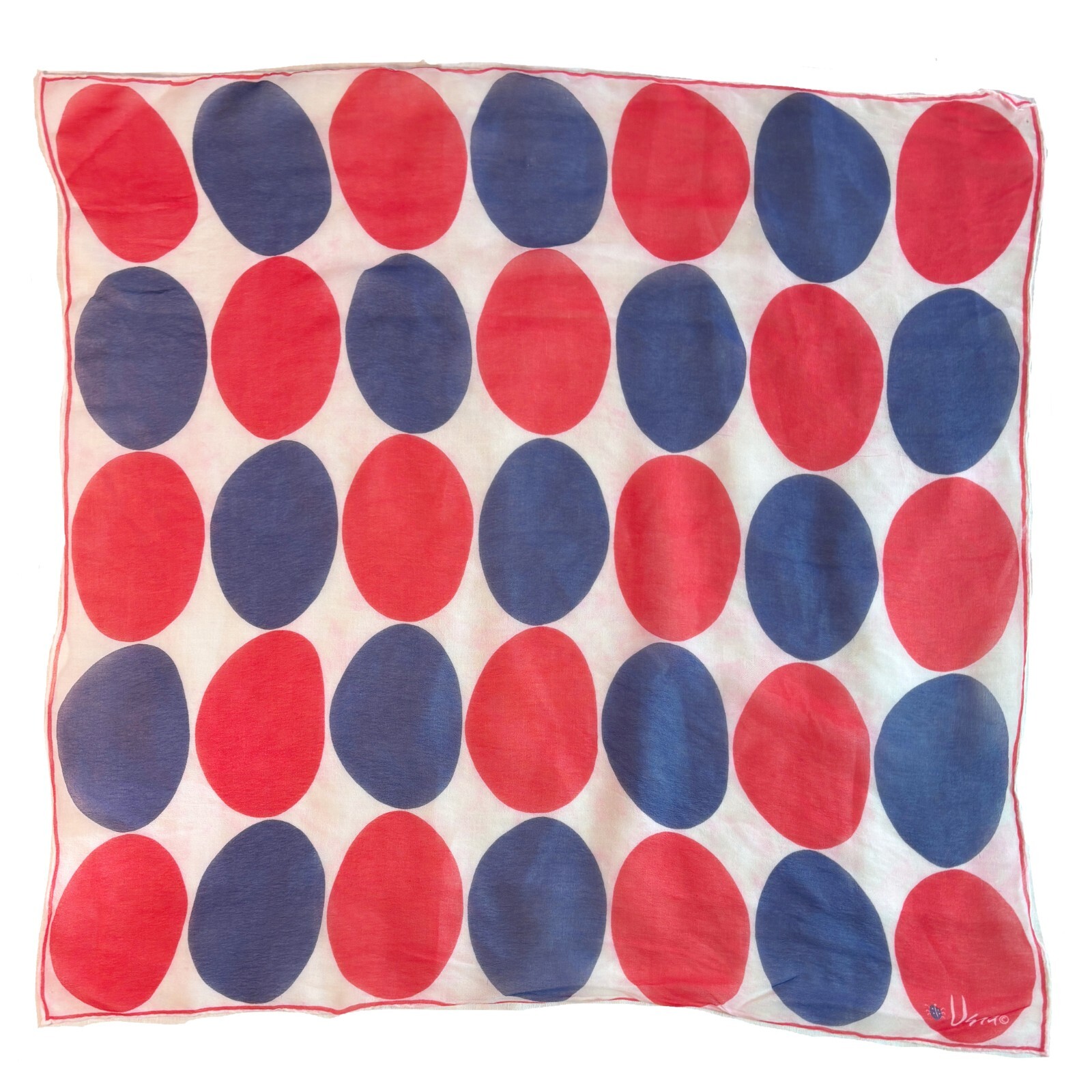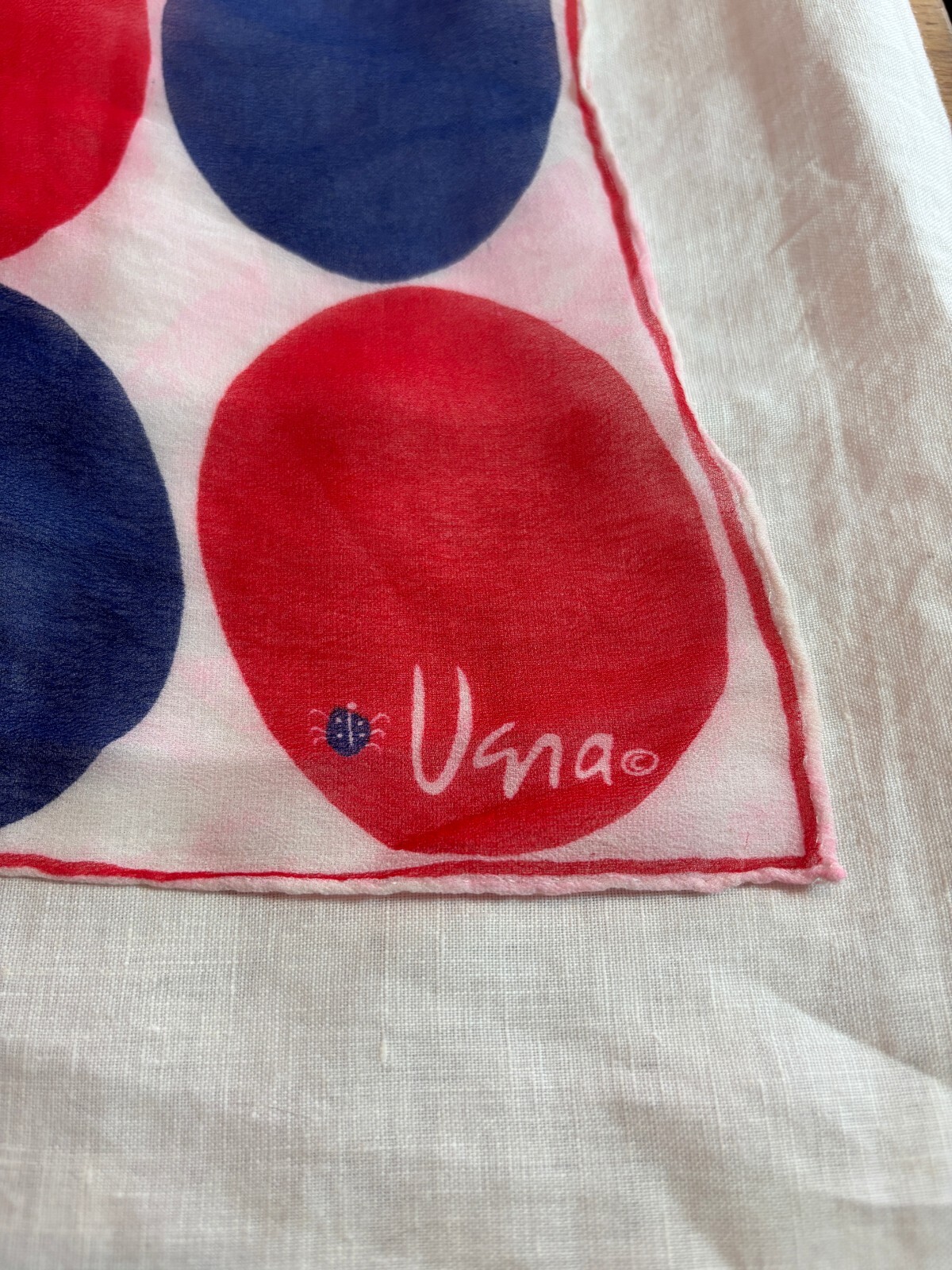 как выглядит Vintage 50s Vera Chiffon Scarf in Blue and Red Geometric Dots Square фото