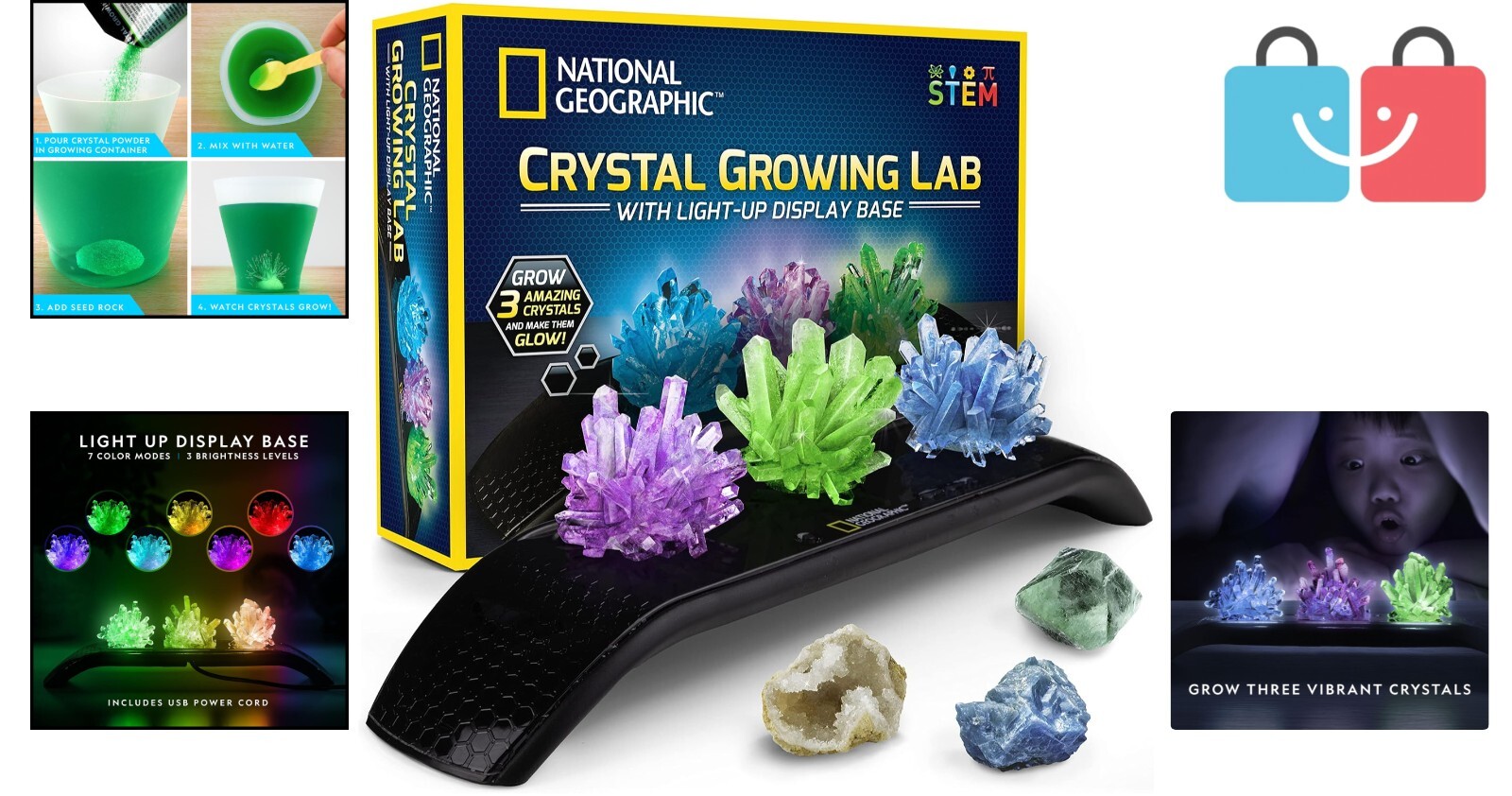 NATIONAL GEOGRAPHIC Crystal Growing Kit - 3 Vibrant Crystals Light-Up Stand