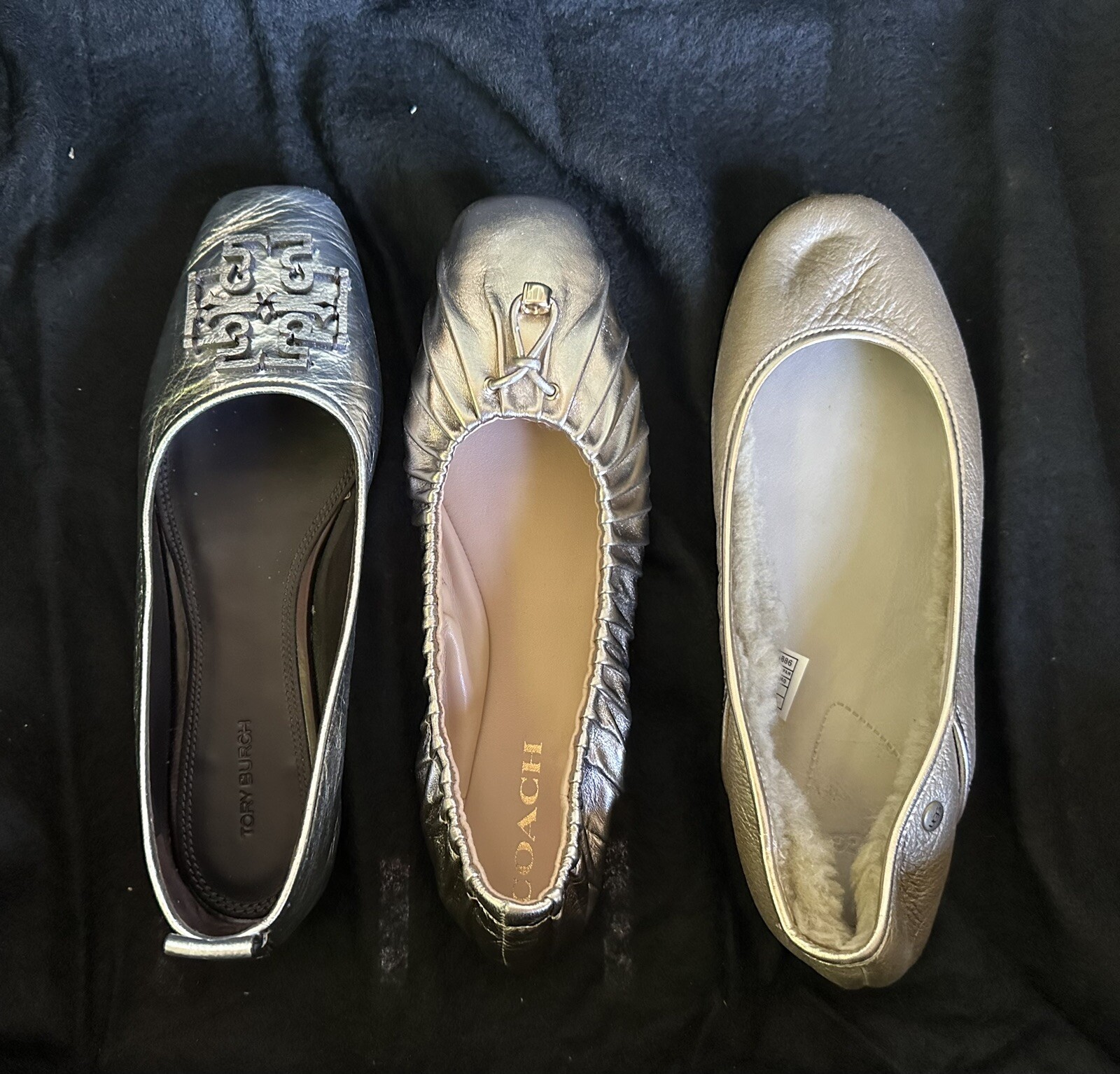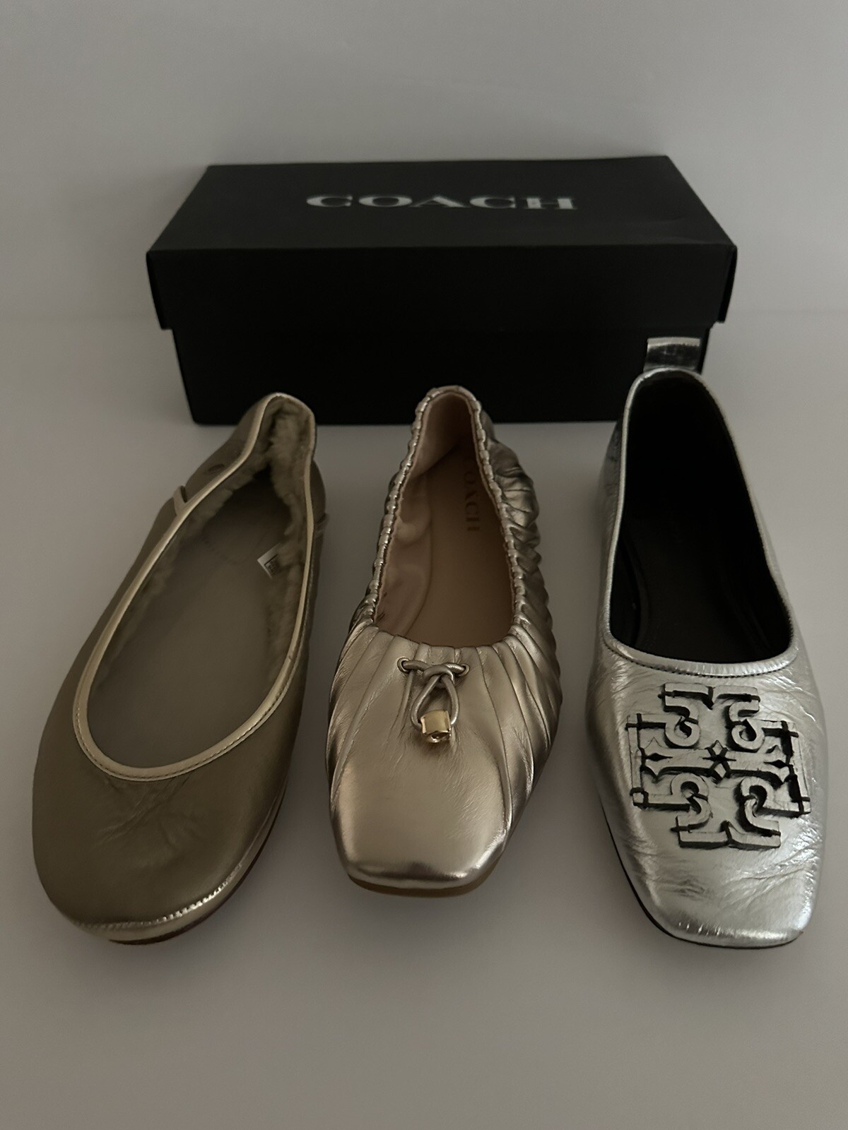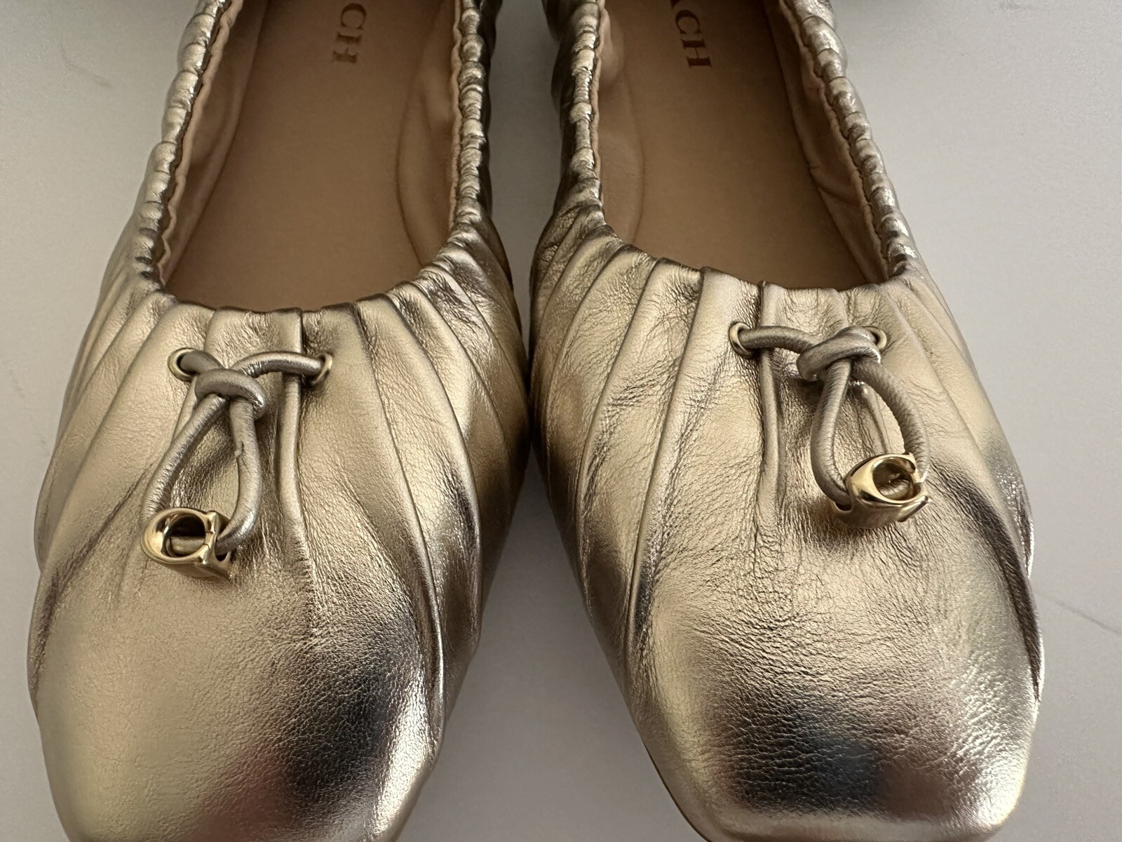 как выглядит COACH Womens Eleanor Ballet Flat, Platinum Champagne Size 8 1/2 B New In Box фото