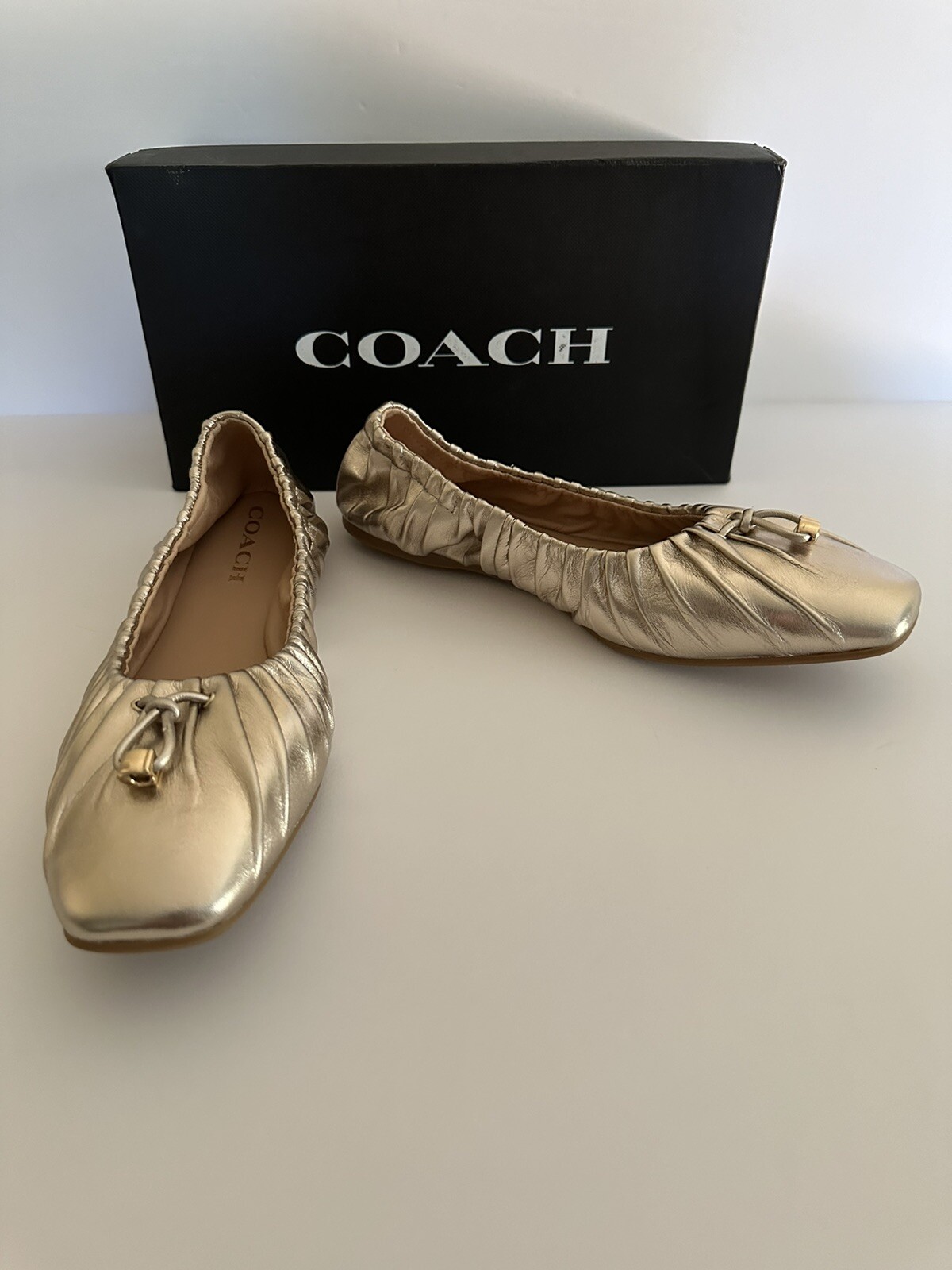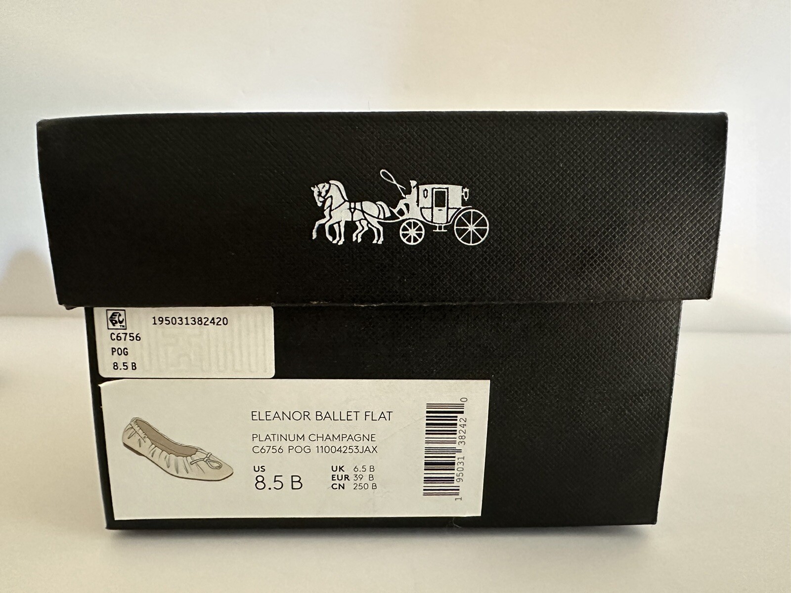 COACH Womens Eleanor Ballet Flat, Platinum Champagne Size 8 1/2 B New In Box
