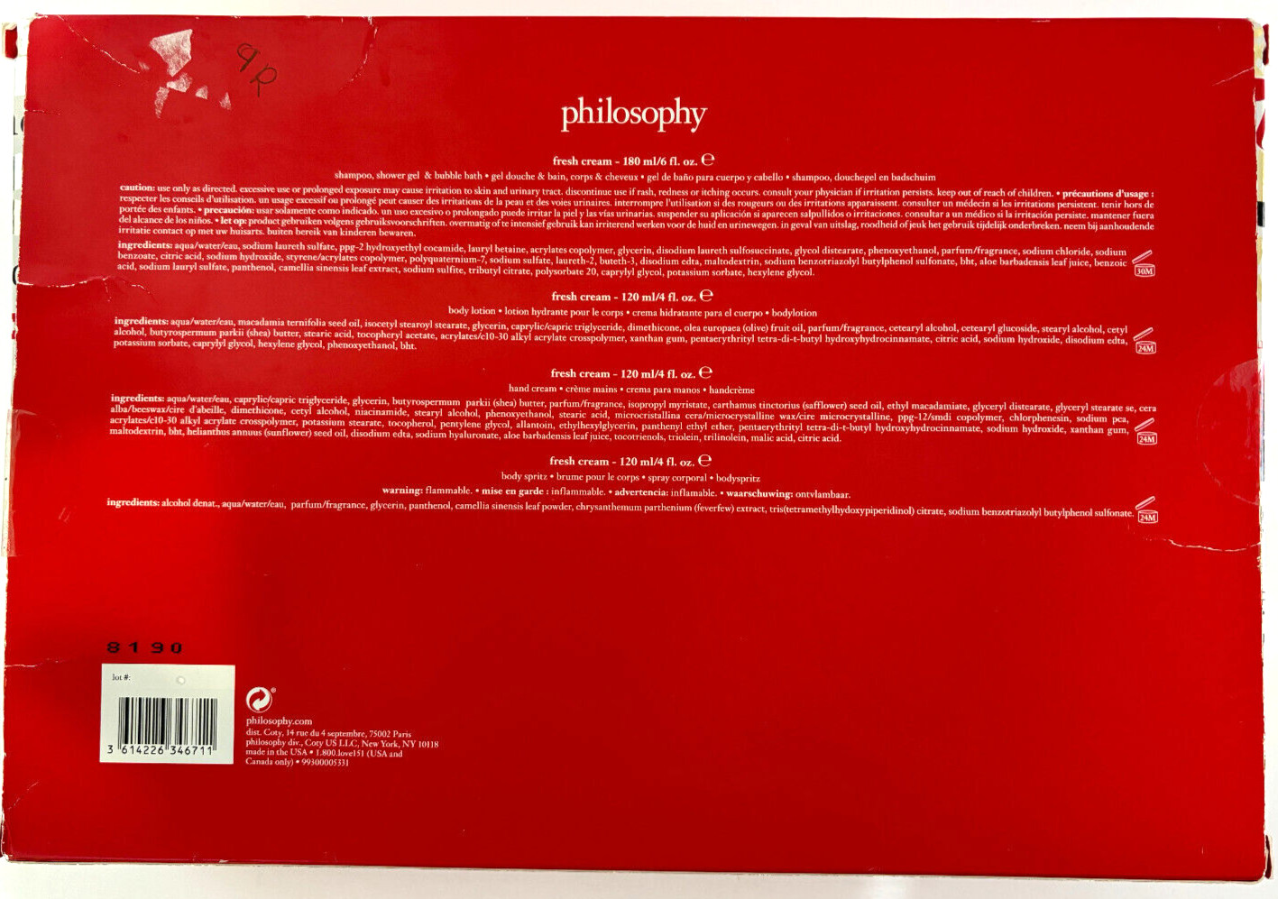 NIB Philosophy Fresh Cream 4pc Set Shampoo/Shower Gel/Body Hand Cream/Spritz