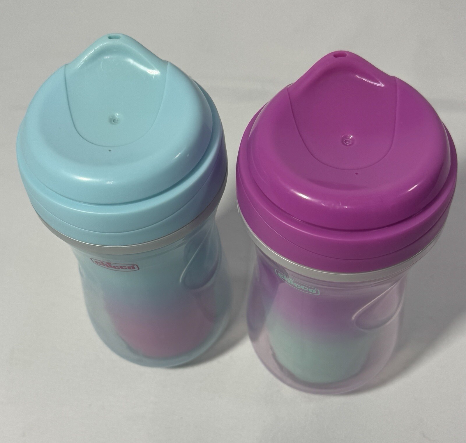 Chicco 9 oz Spill Proof Sippy Cups 2 Pc Set Double Wall Insulated Ombr Purple