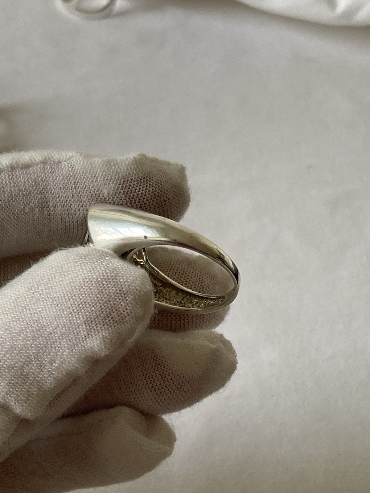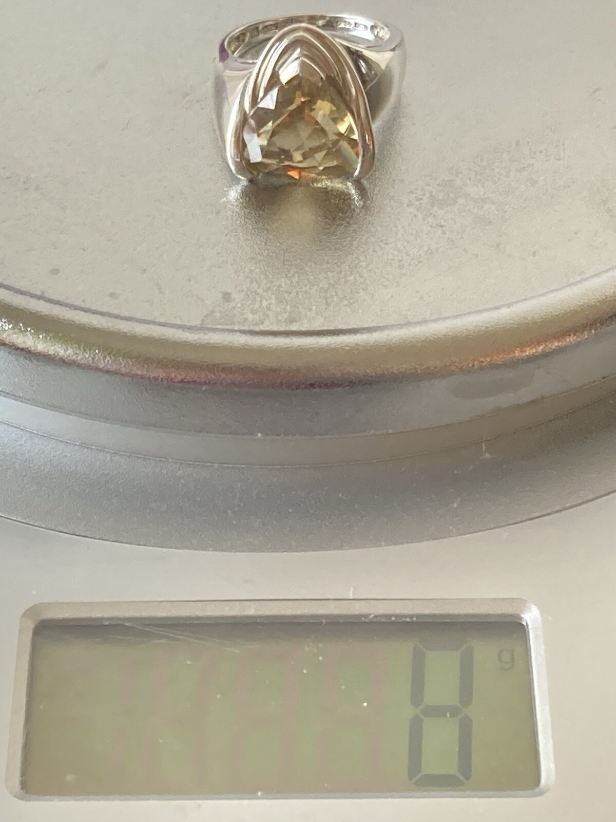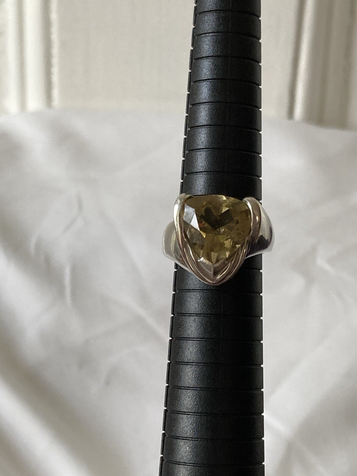 как выглядит Sterling Ring With Large Quartz Stone Abstract Design Setting Sz 8 1/2 фото