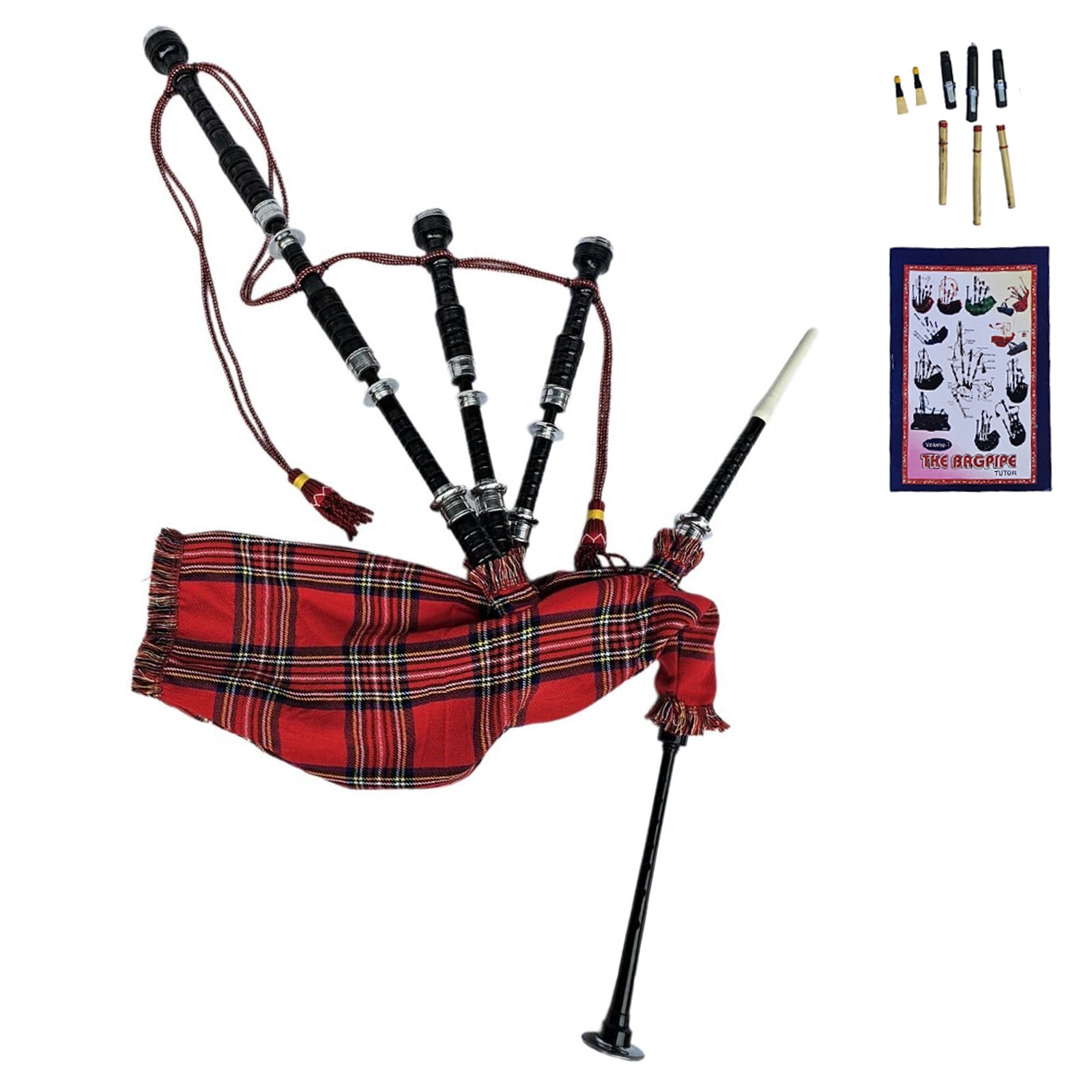 Set Includes: Bagpipe, Carry Bag, Tutor Book, Drone Set, Cane Reeds, Pipe Reeds
