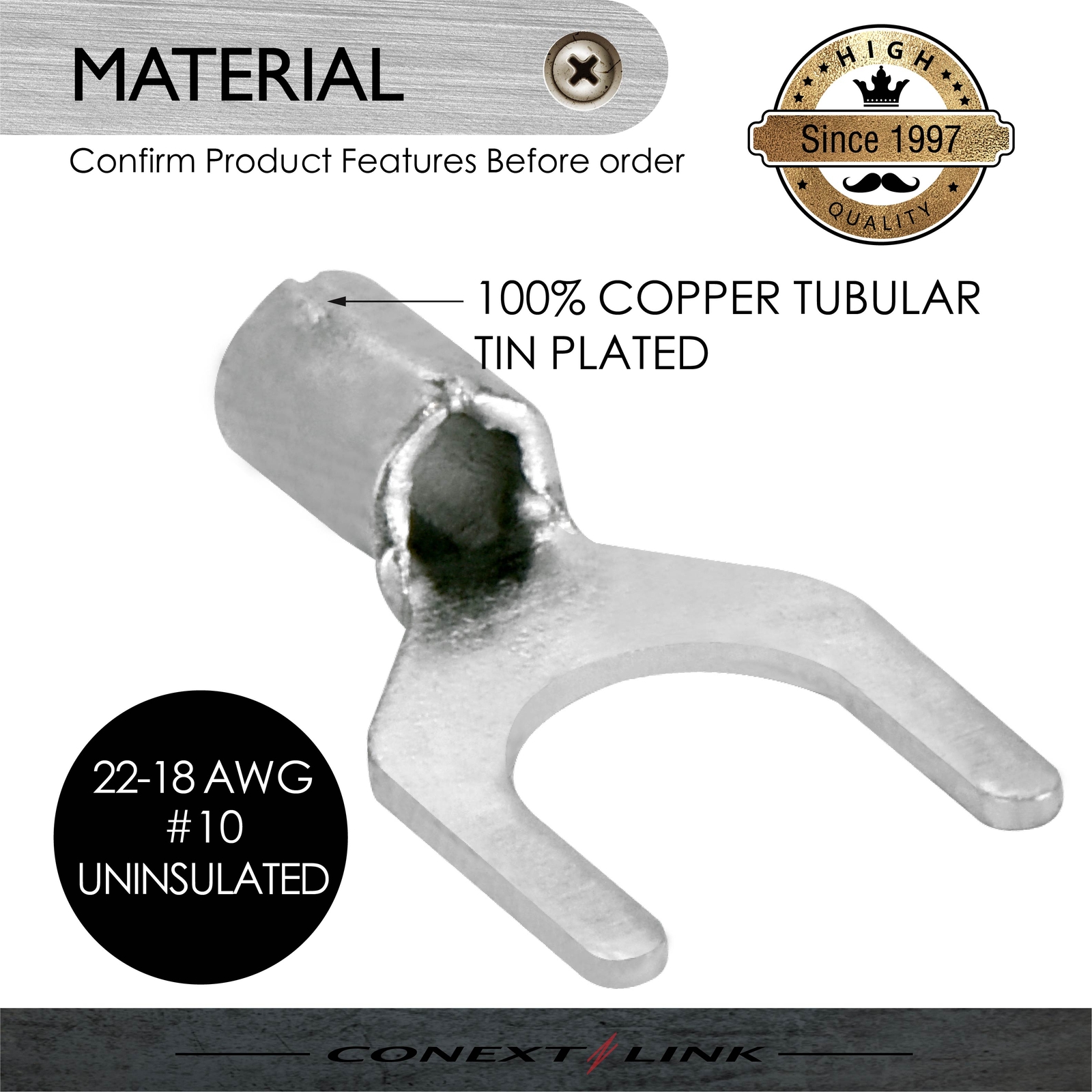 100 Spade Fork Terminal Connector Non-Insulated Uninsulated 22-18 AWG Gauge 10