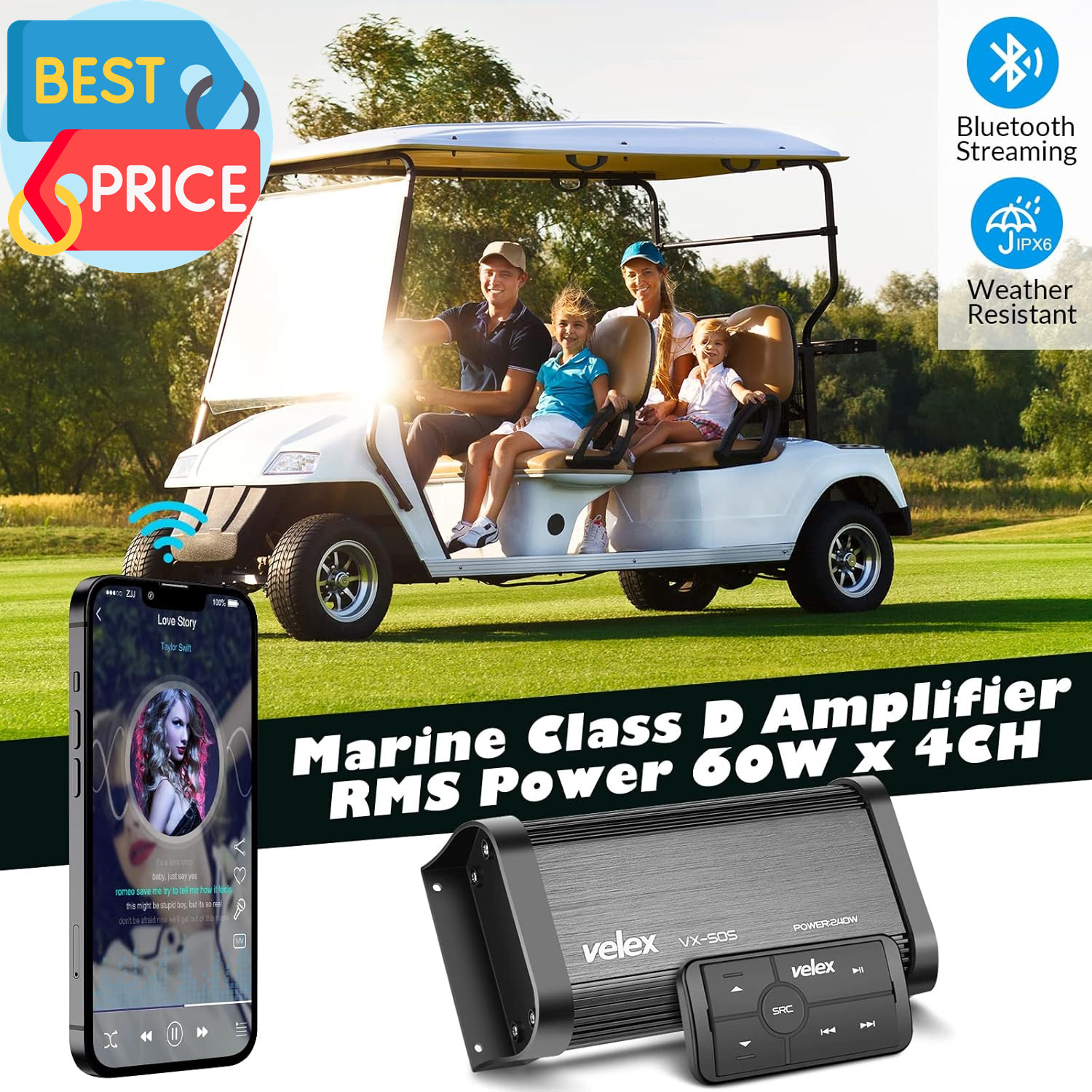 Marine Bluetooth Amplifier Waterproof Class D Amp UTV Amp 4 Channel with Control