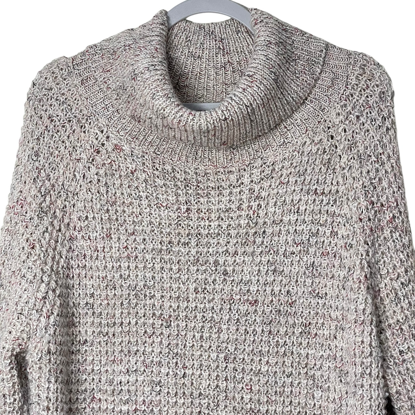 Free People Dylan Tweedy Gray Chunky Cowl Neck Oversize Tunic Sweater Size S