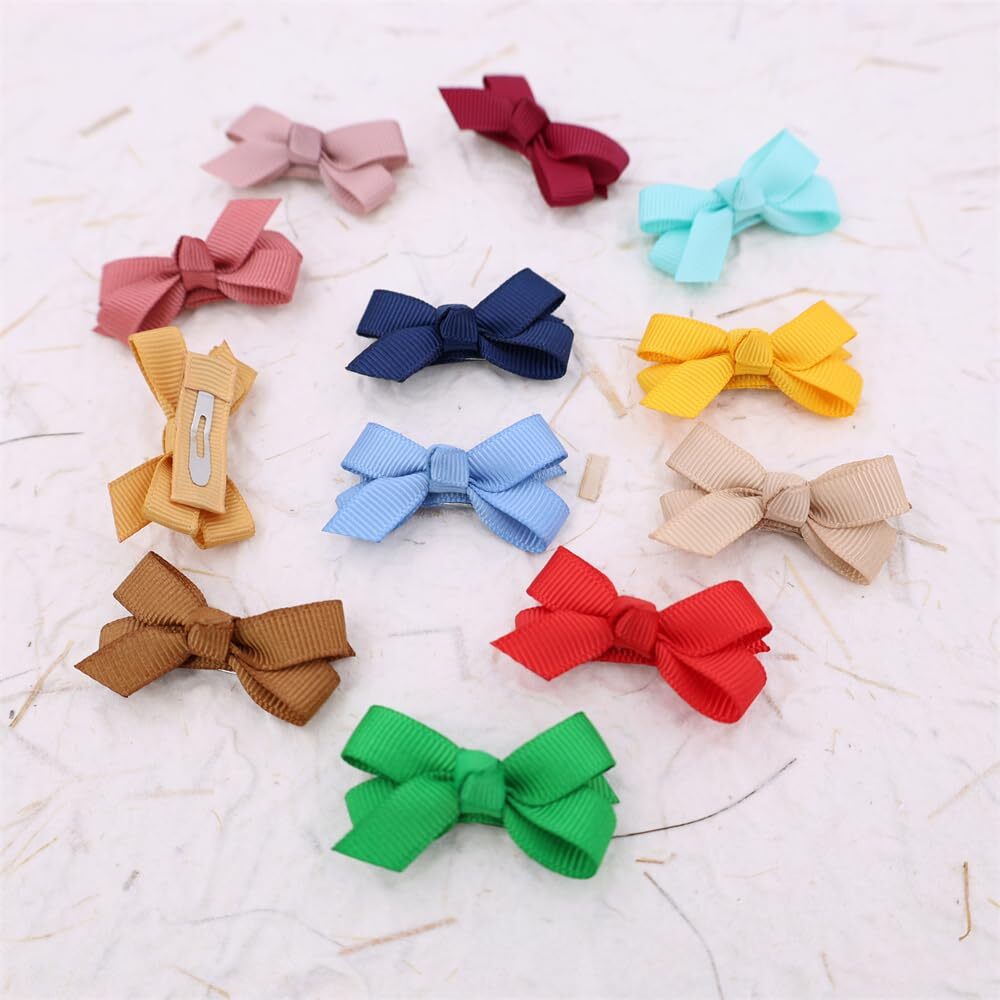12PCS Mini Baby Bow Hair Clips 1.75 Grosgrain Ribbon Snap Clips for Girls