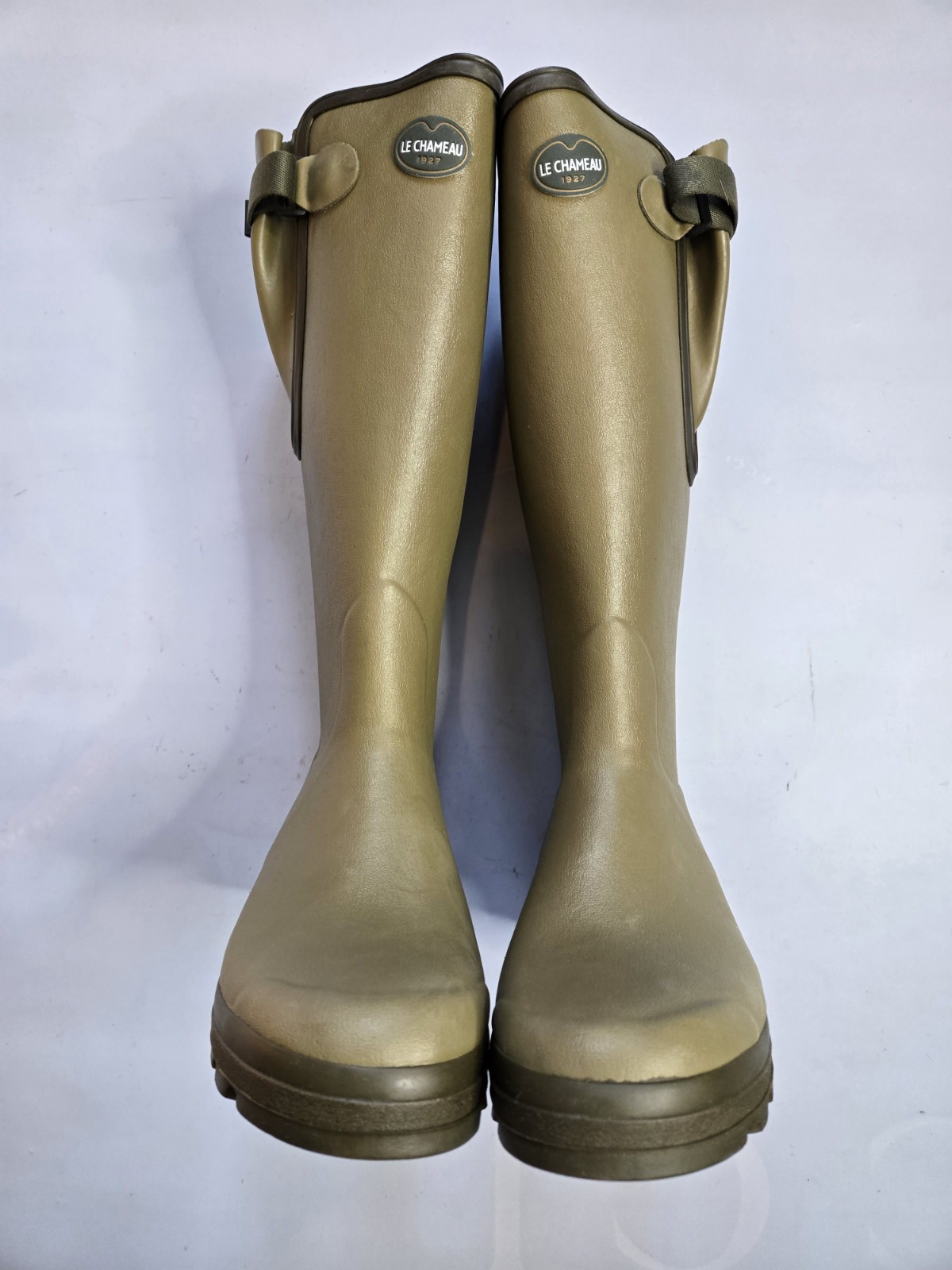 LE CHAMEAU VIERZON LEATHER LINED MEN'S ICONIC GREEN WELLINGTON BOOTS MADE FRANCE