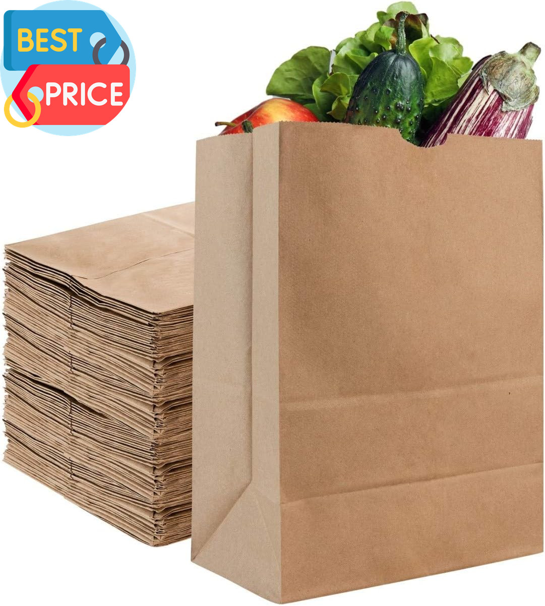 52 Lb Kraft Brown Paper Bags 50 Count - Kraft Brown Paper Grocery Bags Bulk -