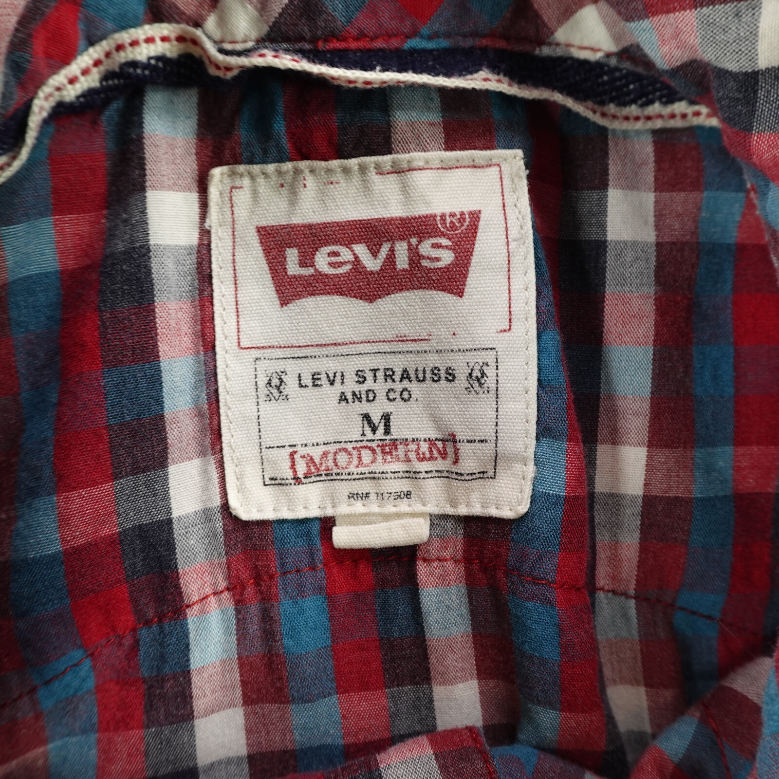 как выглядит Levis Shirt Mens Medium Red White Plaid Western Pearl Snap White Tab Ranch Rodeo фото