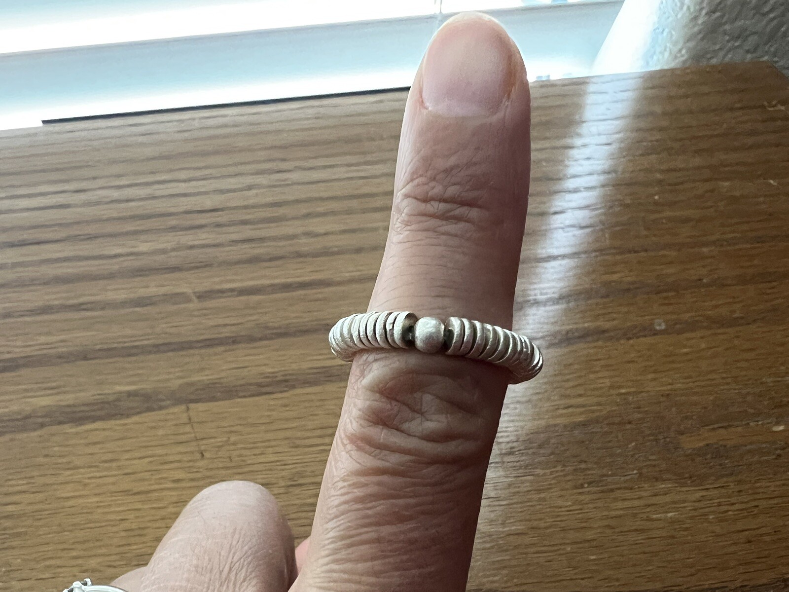 как выглядит Karma Luck Spiritual Inspiration - Sterling Silver Heishi Adjustable Size Ring фото