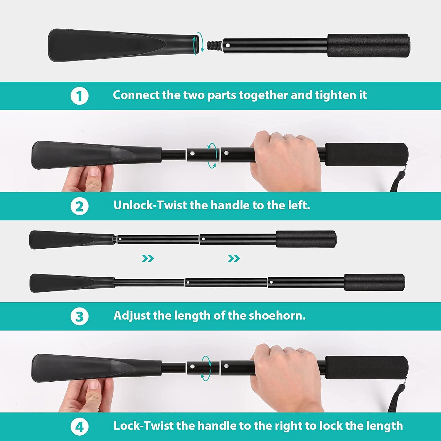 Shoe Horn Long Handle, Shoehorn Long-handled Adjustable Shoe Helper 17-33