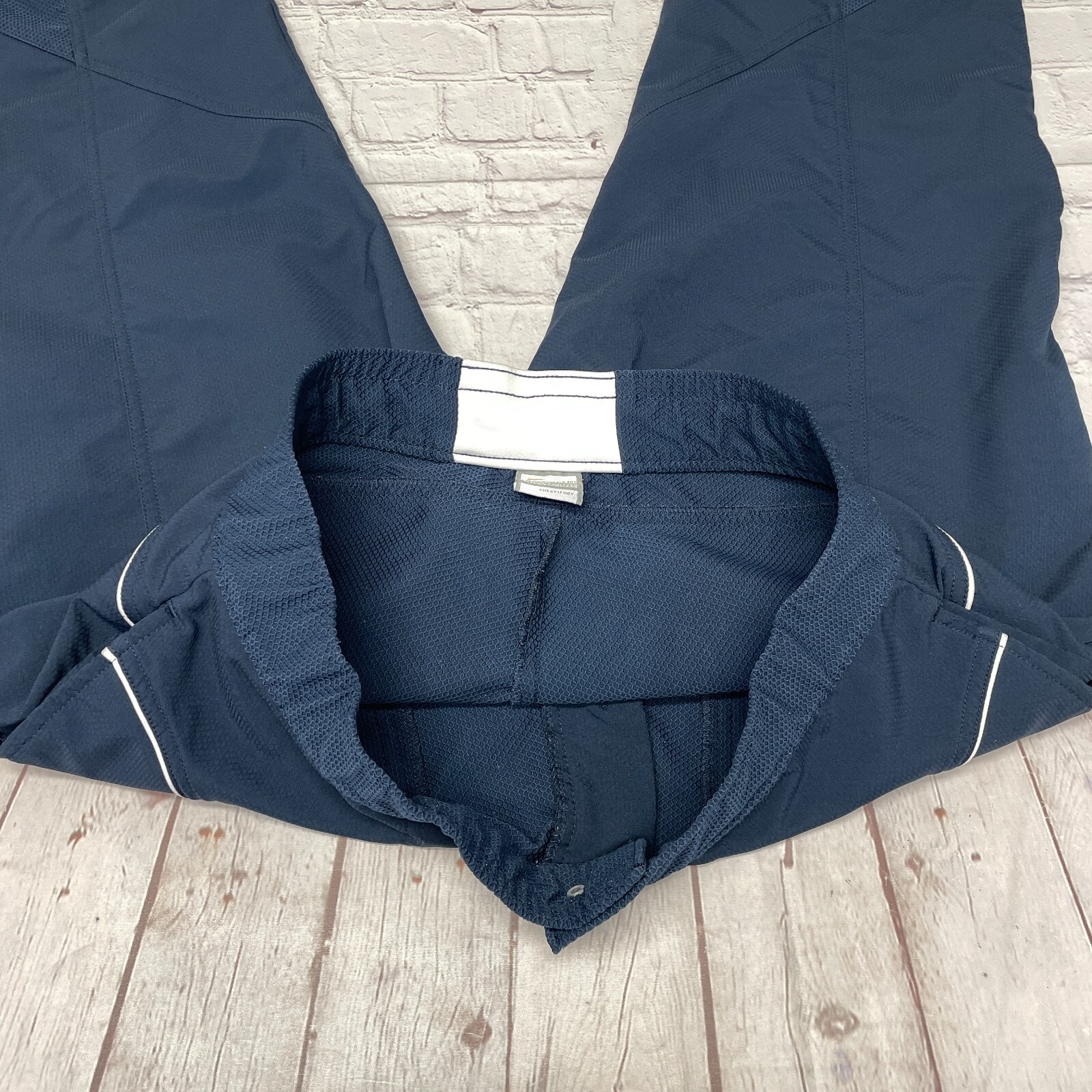 как выглядит Vintage Nike Women Active Y2K Capri Crop Pants Size Medium Blue B373 -7 фото