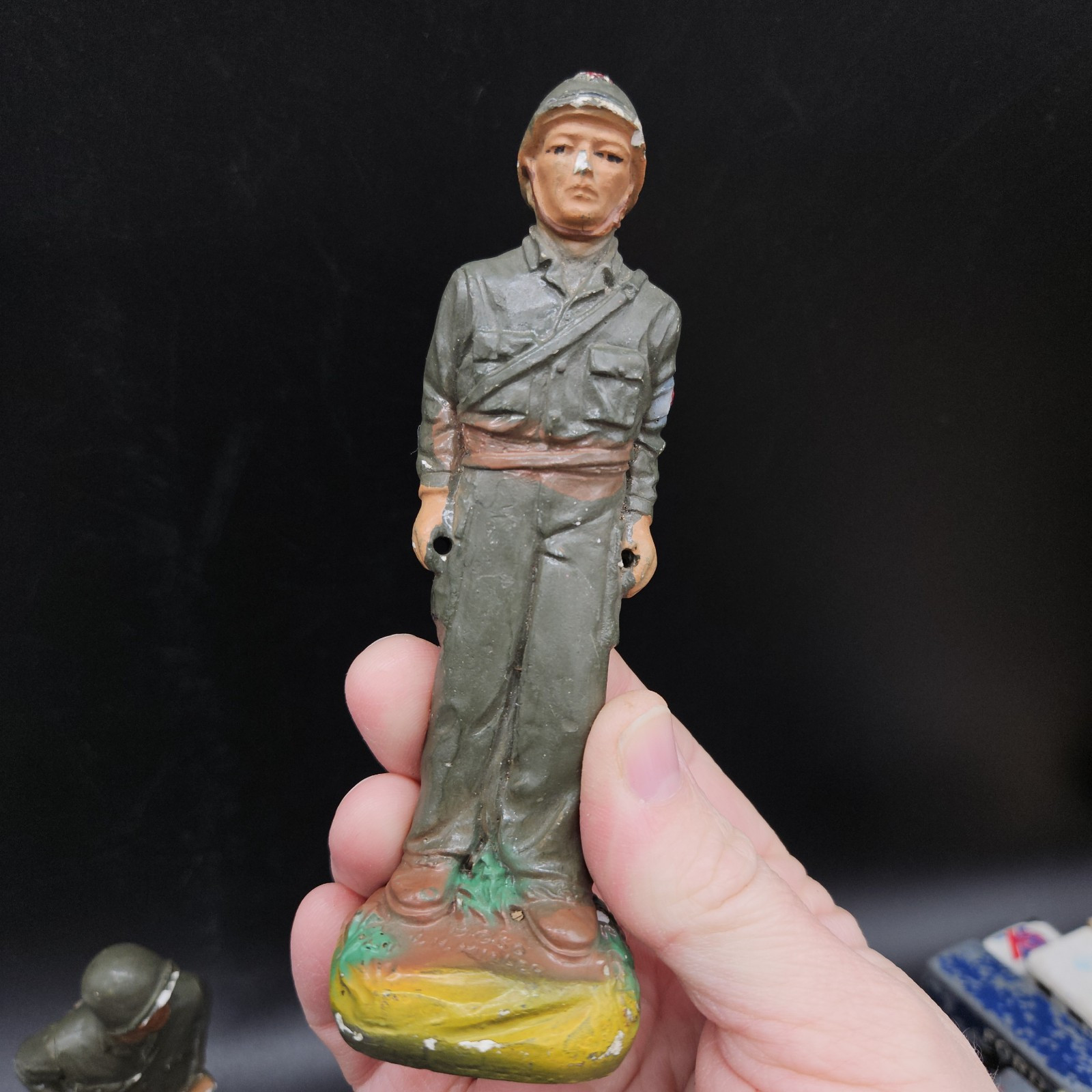 как выглядит 2 Pieces 1950 J.H. Miller Chalkware US Army War Soldiers DAMAGED фото