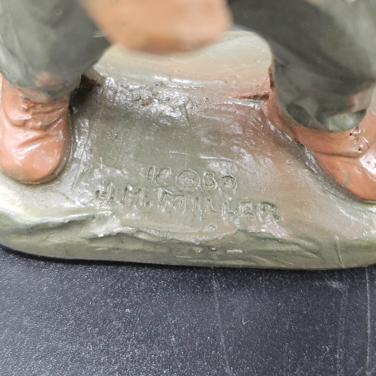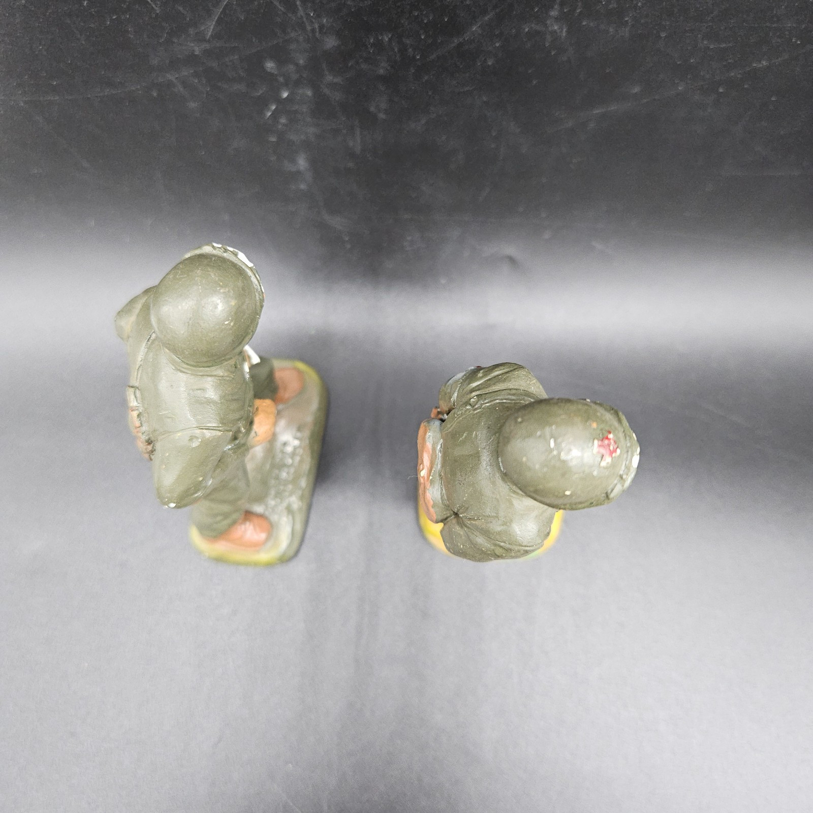 2 Pieces 1950 J.H. Miller Chalkware US Army War Soldiers DAMAGED