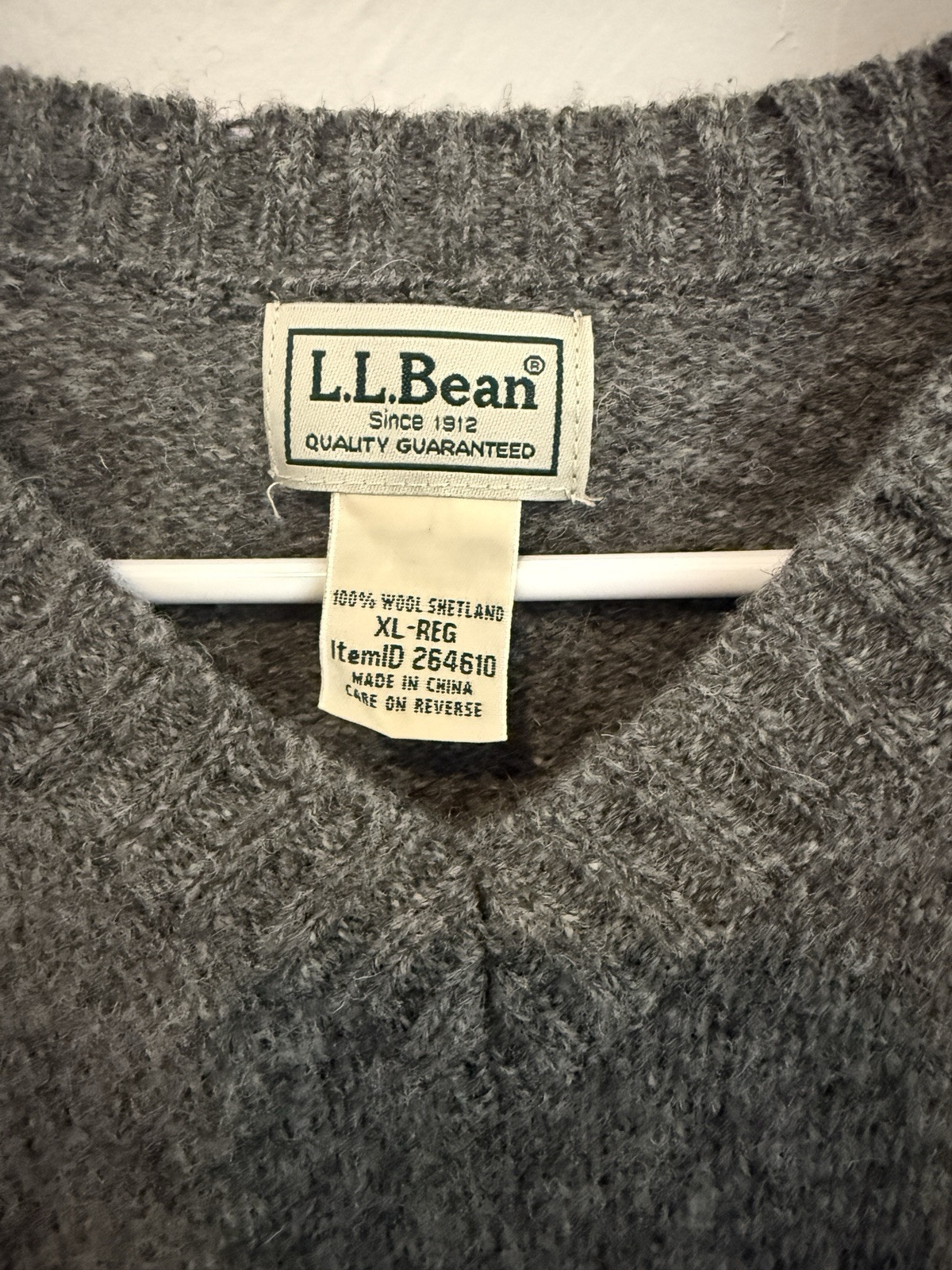 LL Bean Men s XL 100 Shetland Wool V-Neck Sweater Gray Pullover Classic
