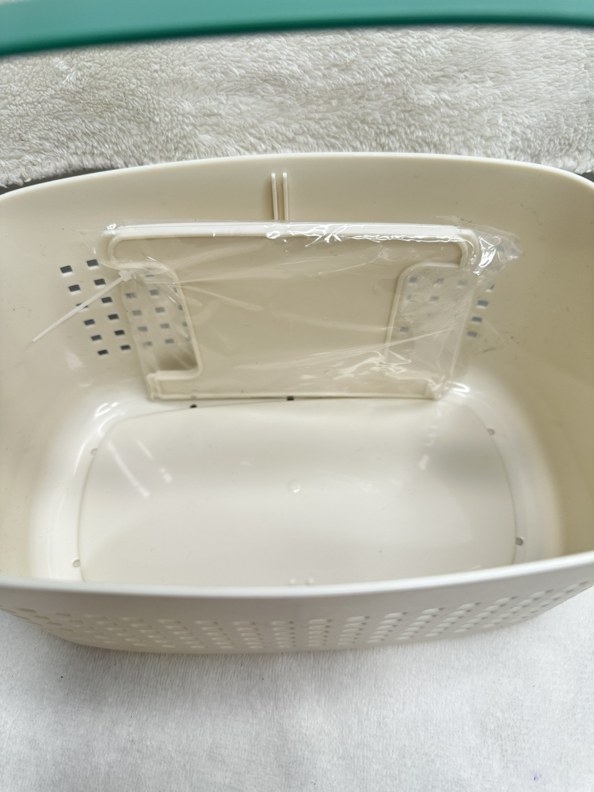 как выглядит Bath Shower Caddy Handle Divider Ivory Beige Plastic Organizing Holes To Drain фото
