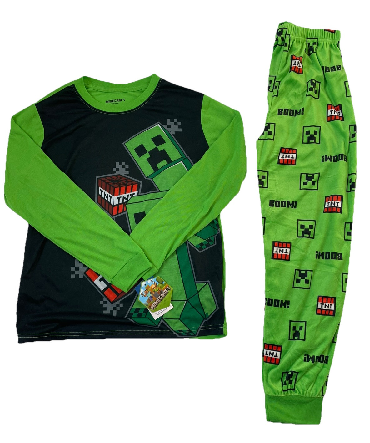 Minecraft creeper Pajamas Boys long sleeve medium M 8 2-Piece Shirt Pants TNT