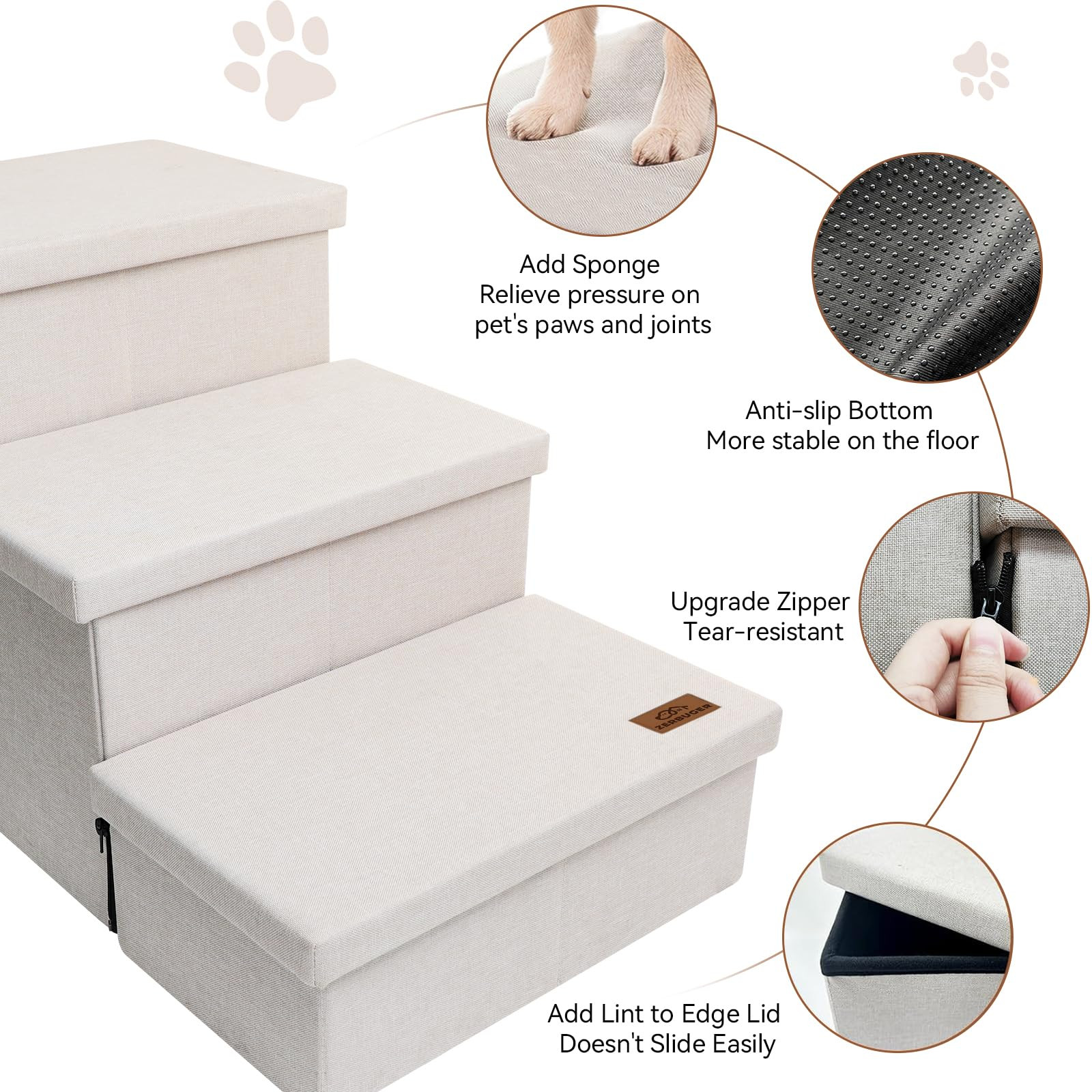 Dog Stairs with Storage 17.5H 3-Step Wider Steps for Small/Medium/Large Dogs