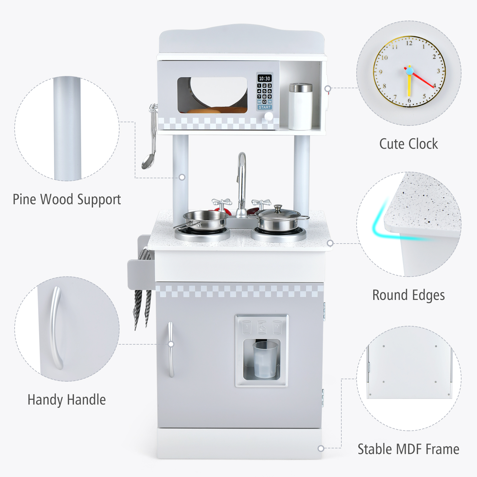 Pretend Wooden Play Kitchen Kids Kitchen PlaySet W/IceDispenser Stovefor Toddler