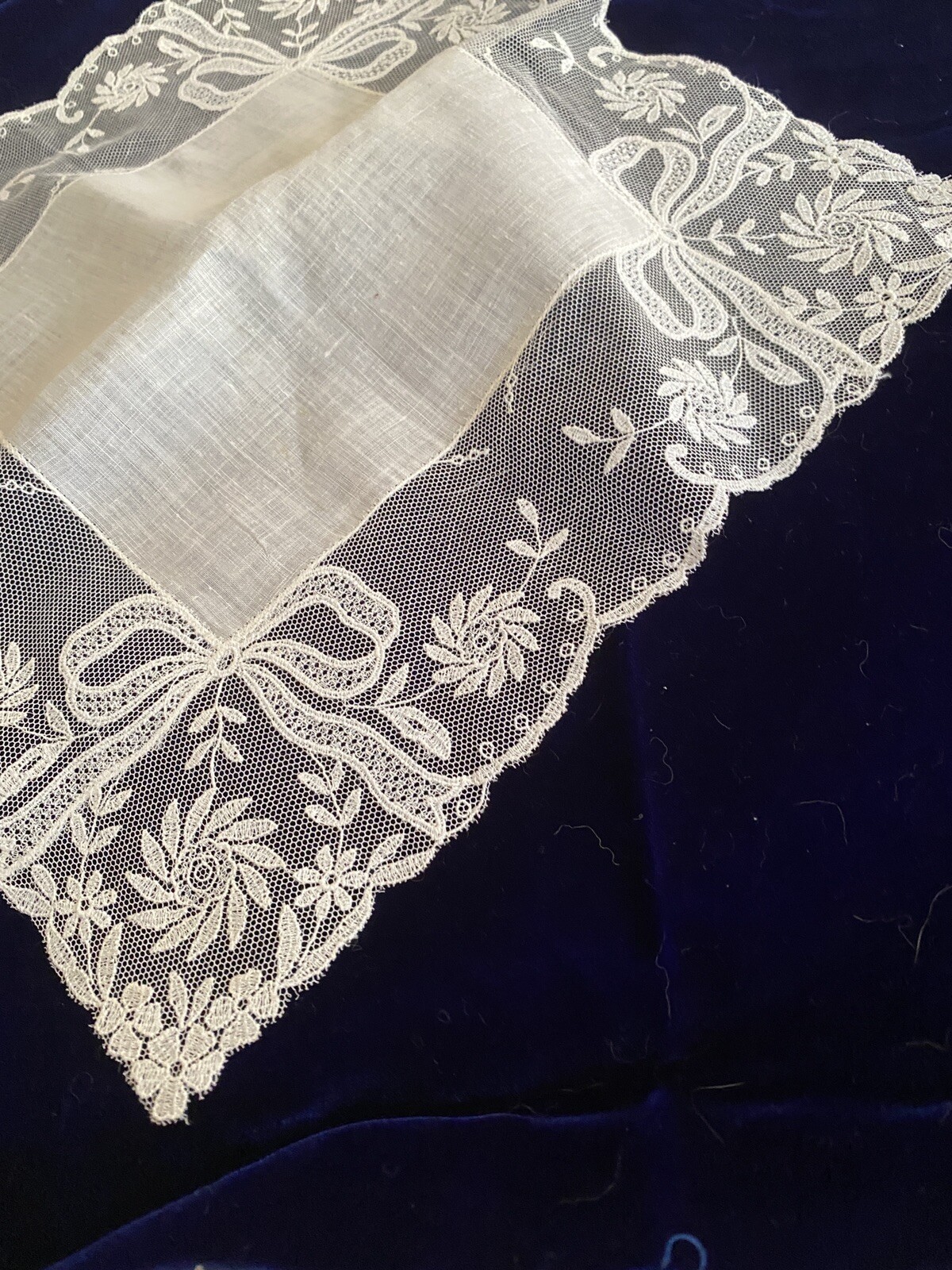 как выглядит VTG Net Lace Hankie Handkerchief Cream Cotton Batiste Bow Designs Wedding фото