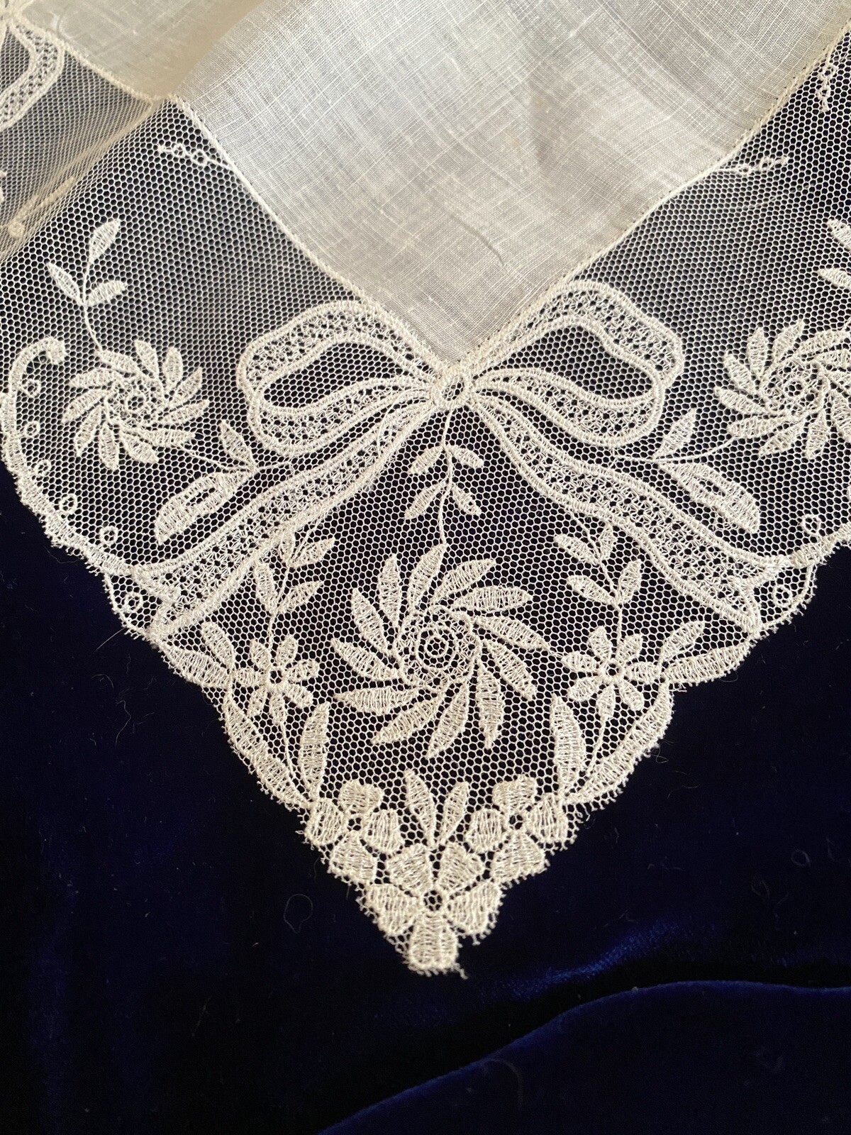 VTG Net Lace Hankie Handkerchief Cream Cotton Batiste Bow Designs Wedding