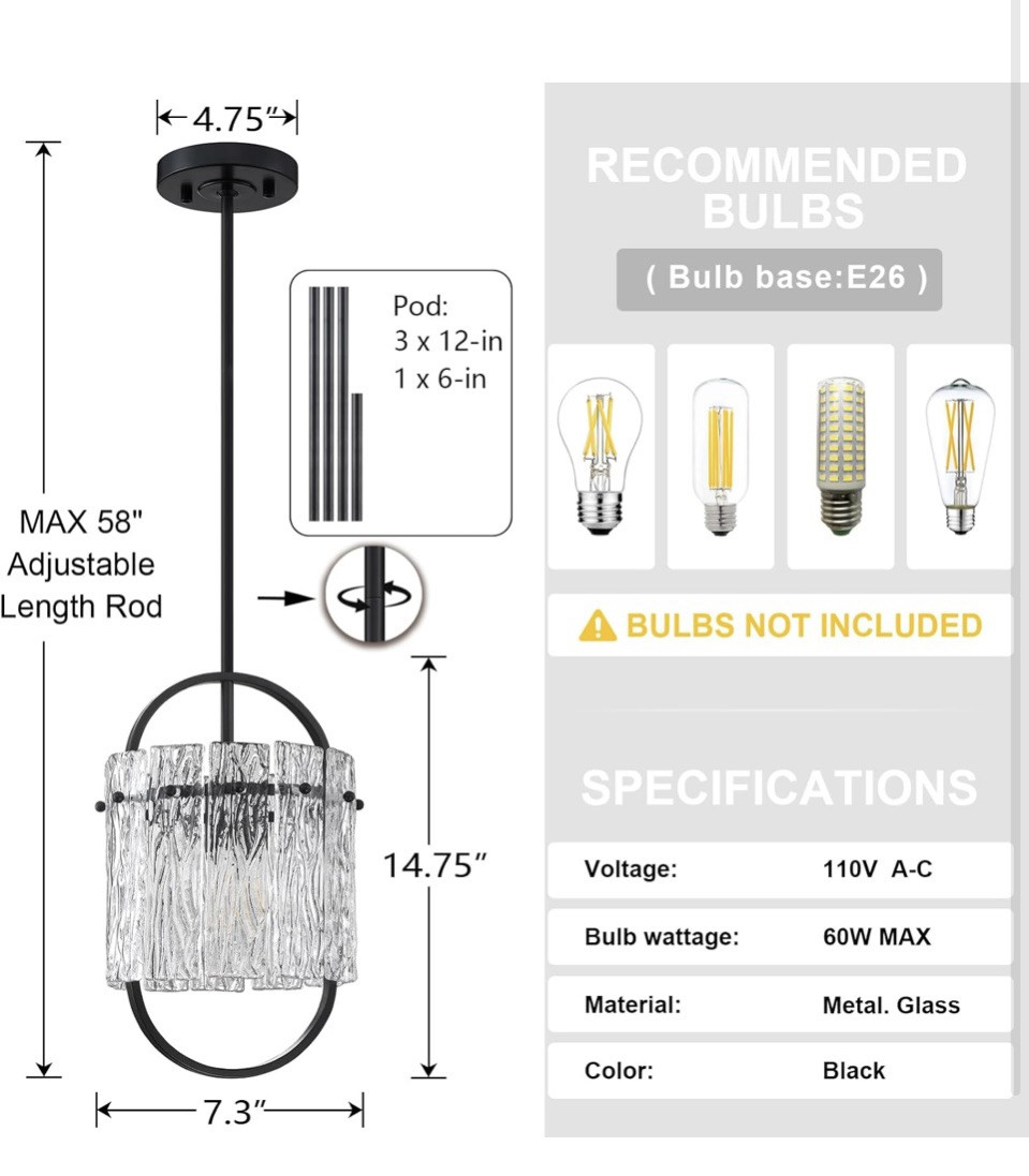 Included Components: Mounting Hardware, 50" Adjustable Cord