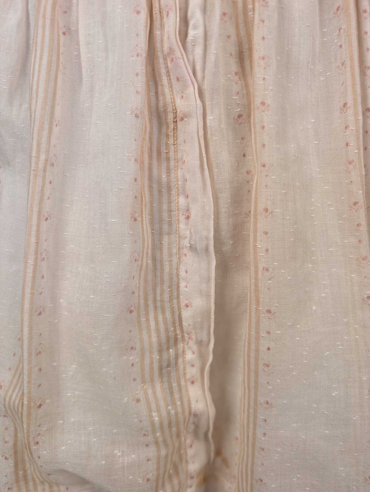 как выглядит EDWARDIAN STRIPED MUSLIN DRESS W LAVENDER SILK EDGING TRIPLE TIERED SKIRT фото