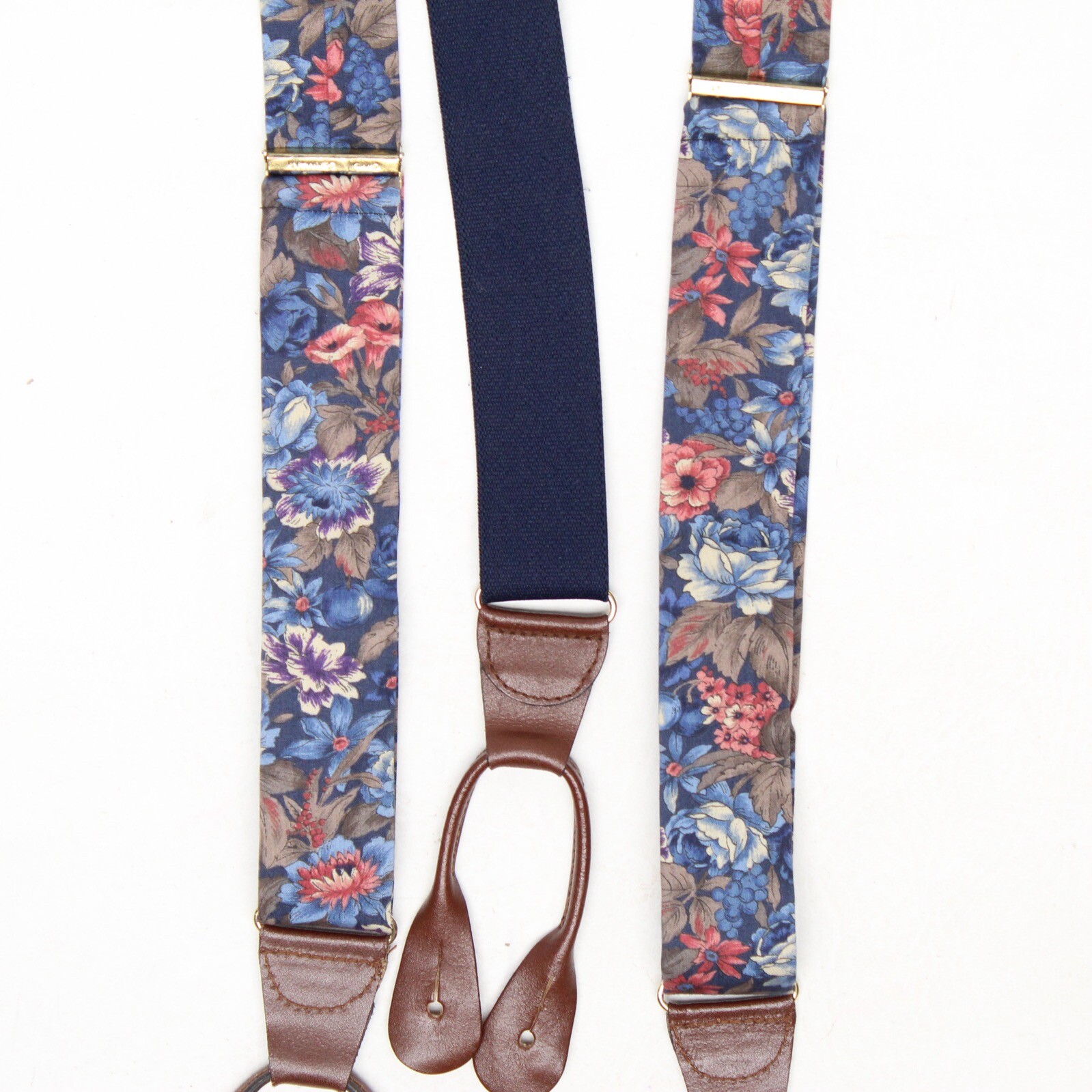 как выглядит CAS Germany Mens Braces Suspenders Blue Brown Pink Floral Print Cotton Leather фото