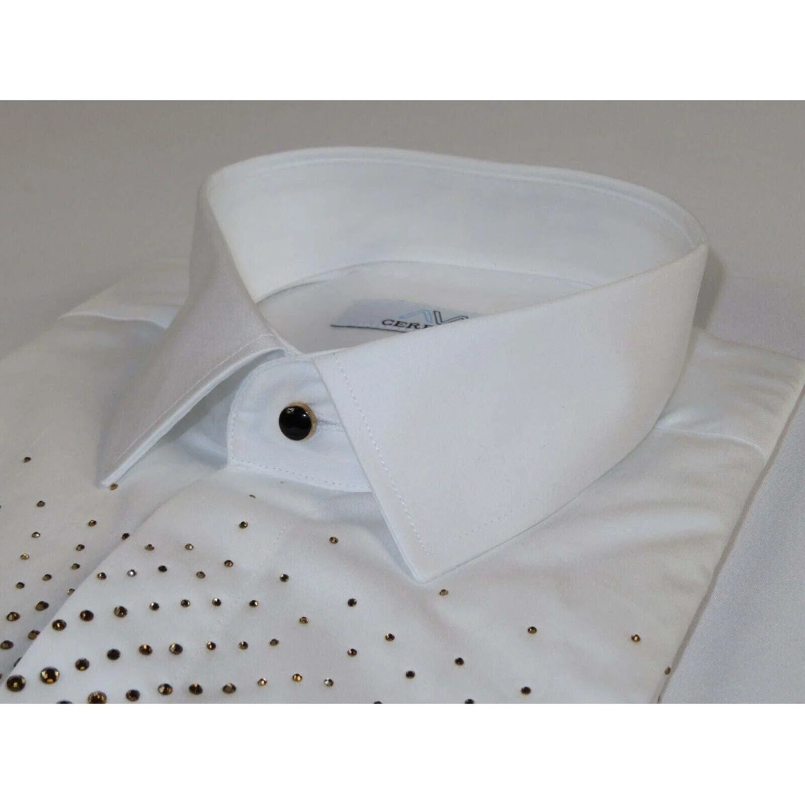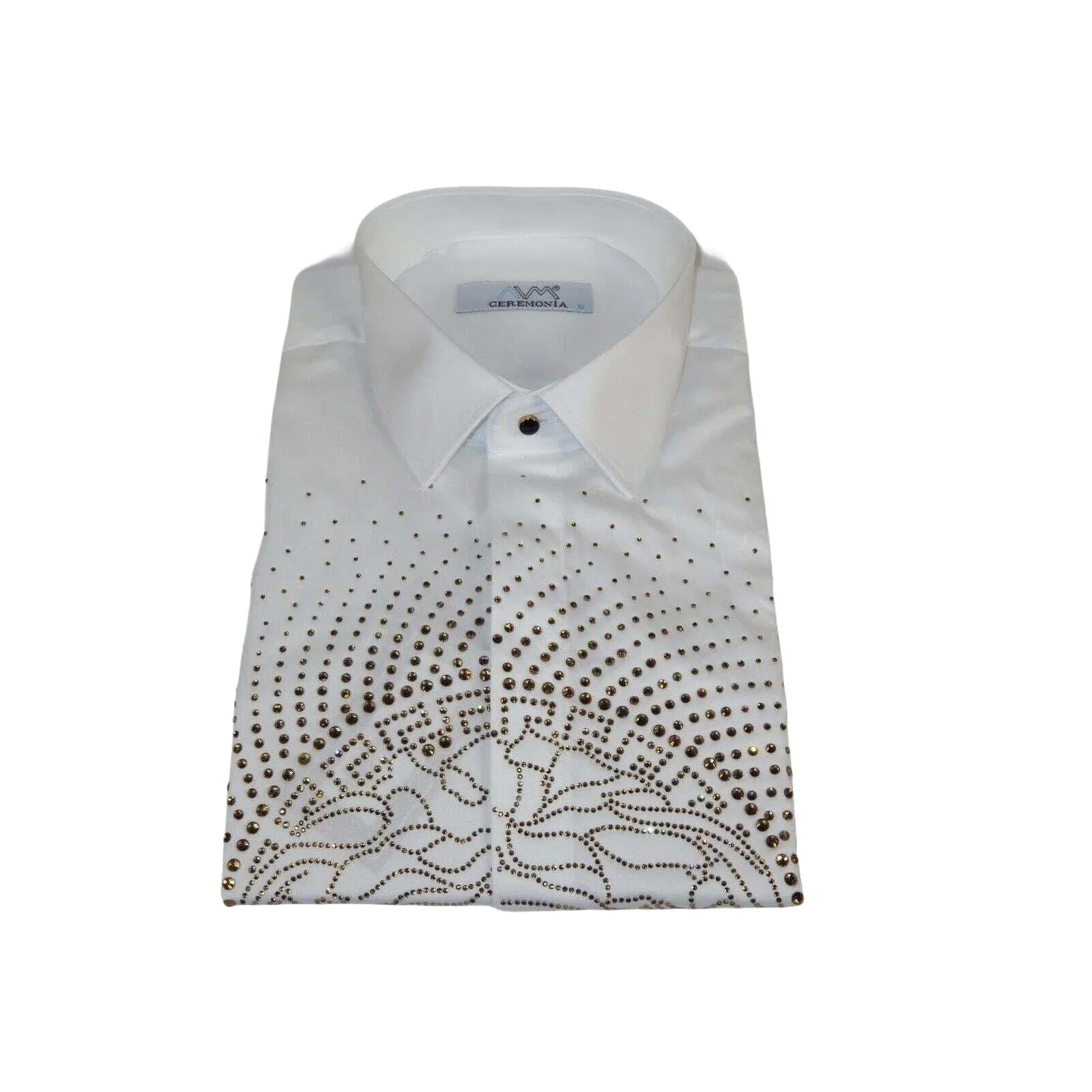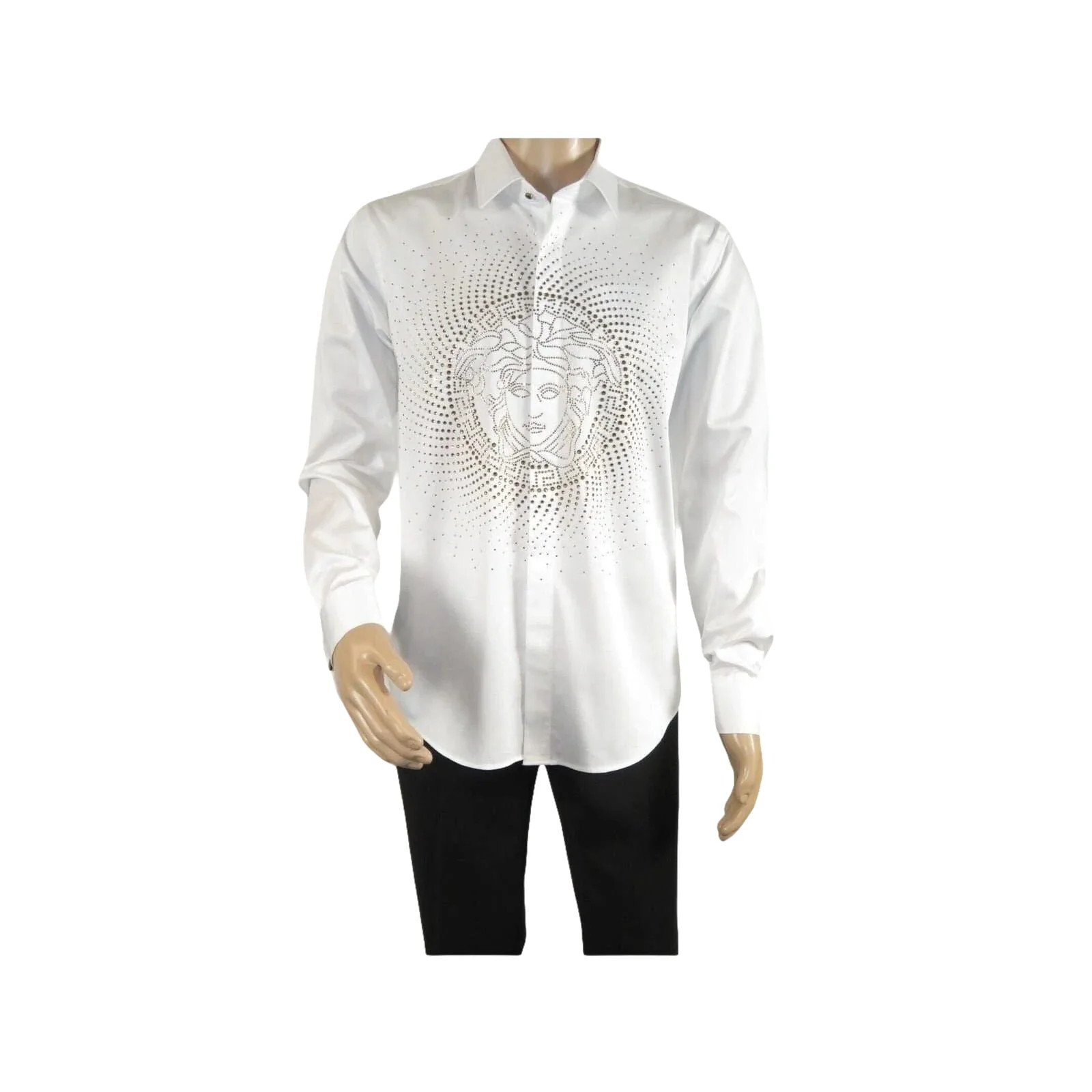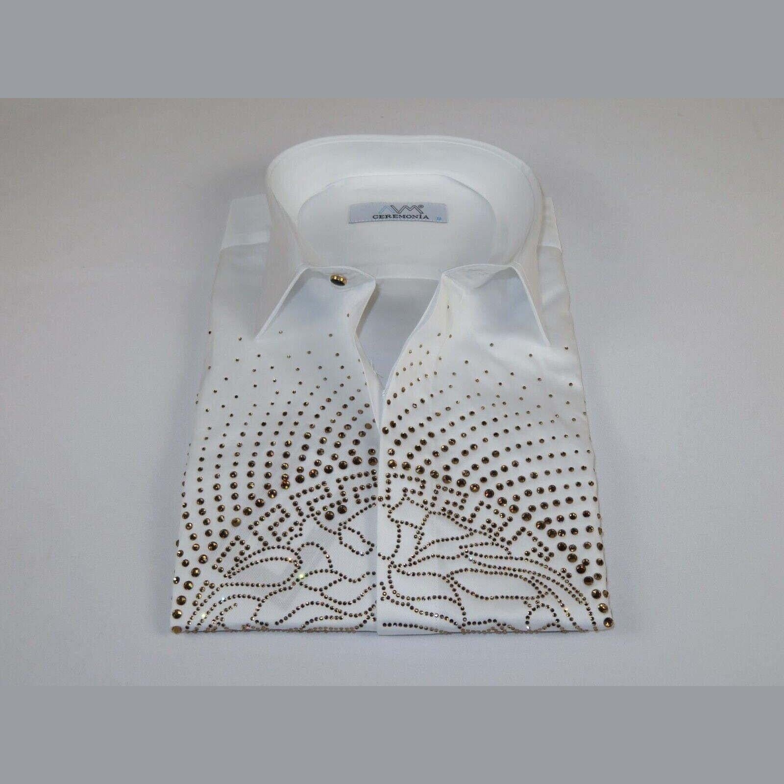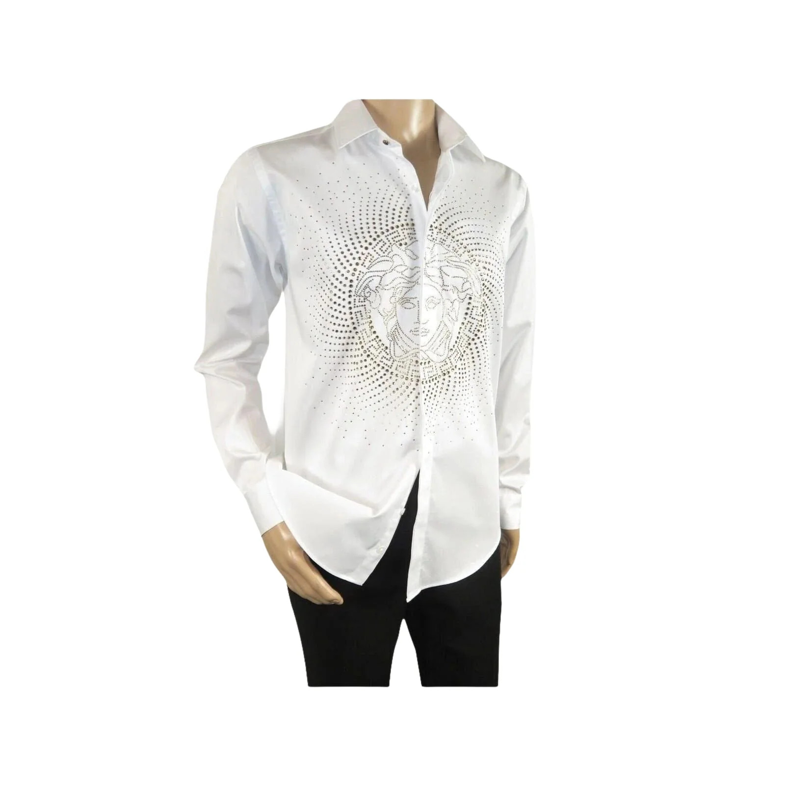 Mens CEREMONIA Shirt 100 Cotton Medusa Medallion Rhine Stones STN 13 VRS white
